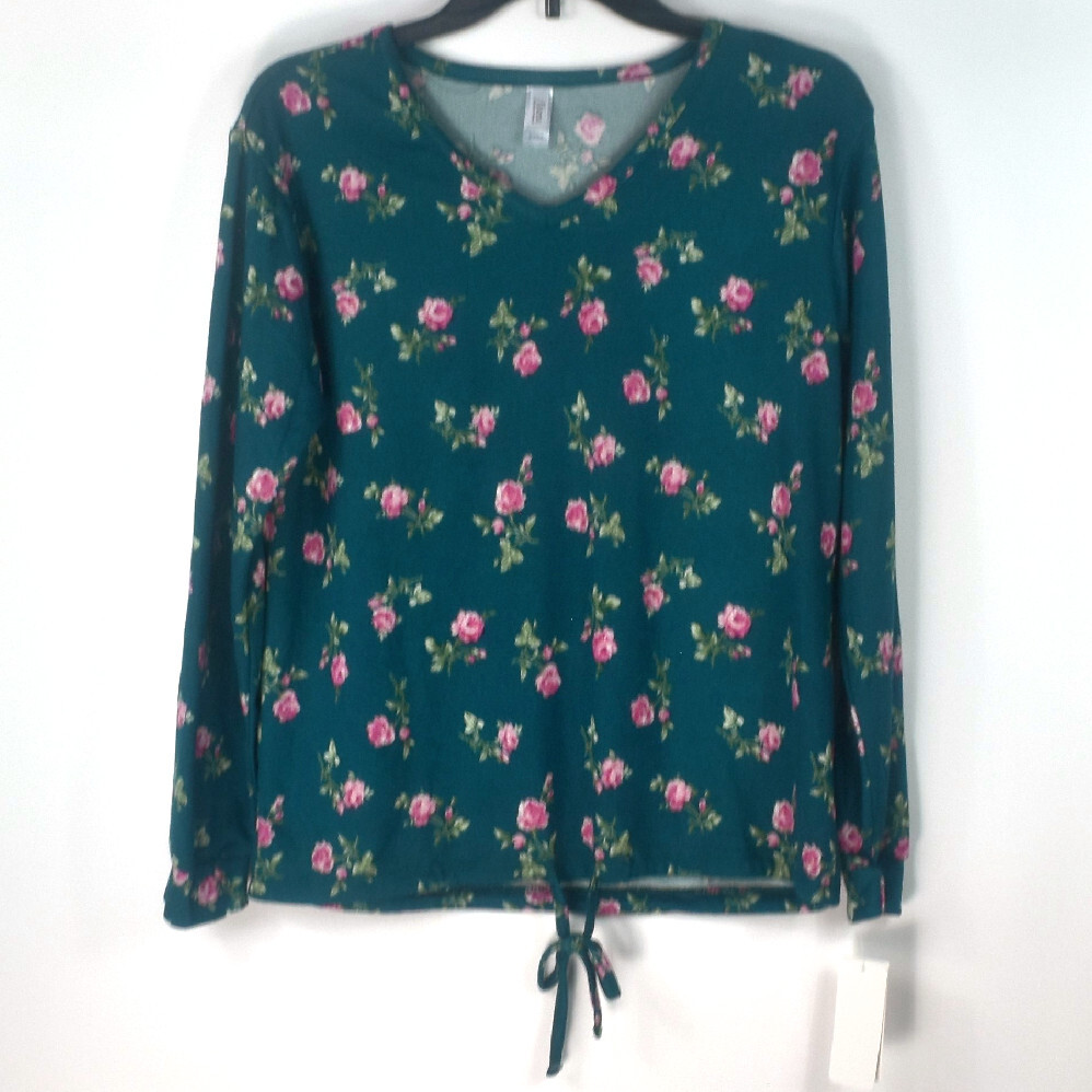 FLORA NIKROOZ Jenna Floral Print Sweater Knit Pajama Top Pants Set Jade S
