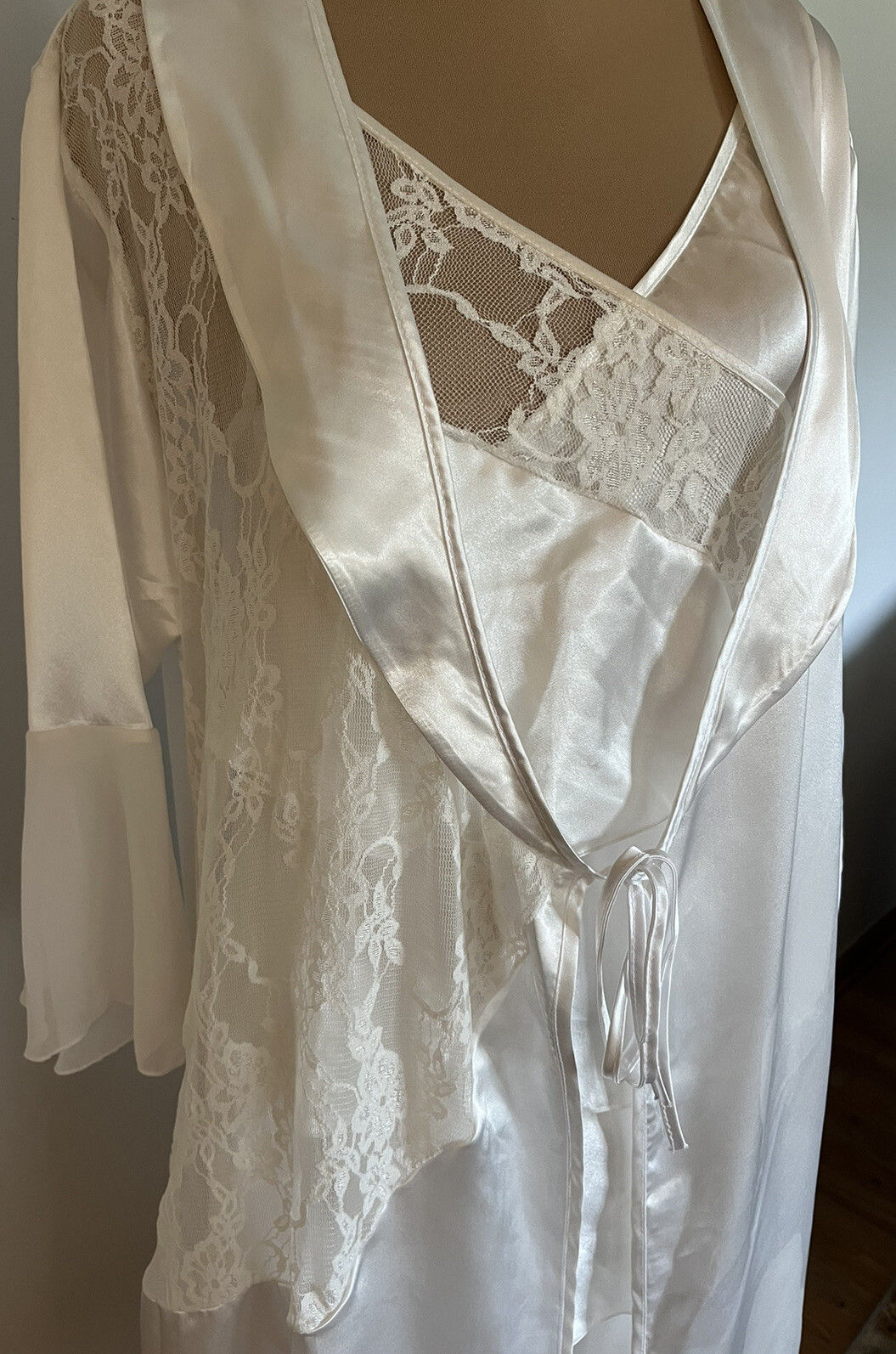 как выглядит VTG Peignoir Set - White Ruffled Lace Wrap Babydoll Lingerie w/ Lace Robe med фото