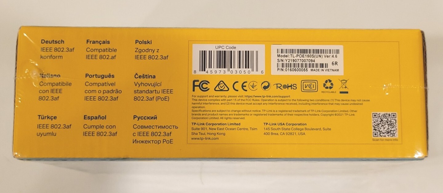 NEW TP-LINK TL-POE150S Gigabit PoE Injector Black Factory Sealed