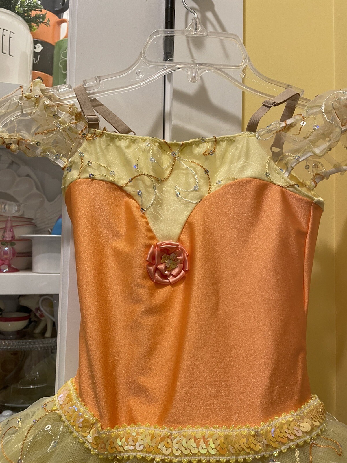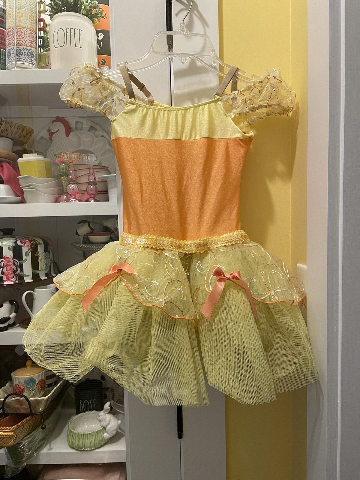 Revolution dancewear orange and yellow leotard tutu dress medium child