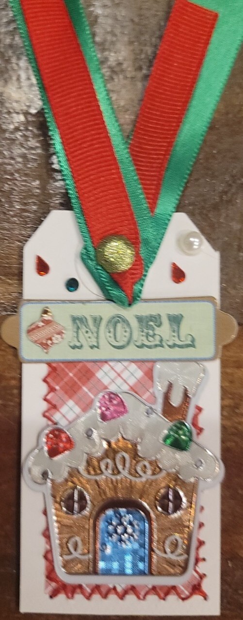 Sewn Premade Scrapbook Page/Sewn Tag Set: Happy Holidays