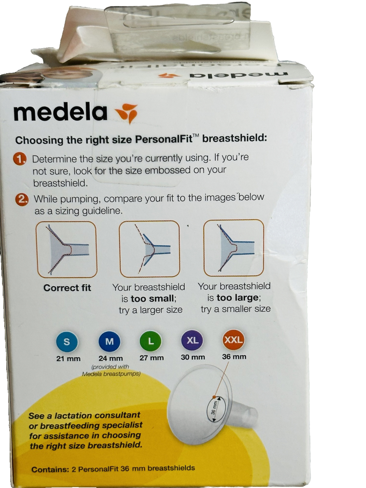 Medela PersonalFit Breast Shields, 36mm, Clear, 87084, Set of 2-XXL