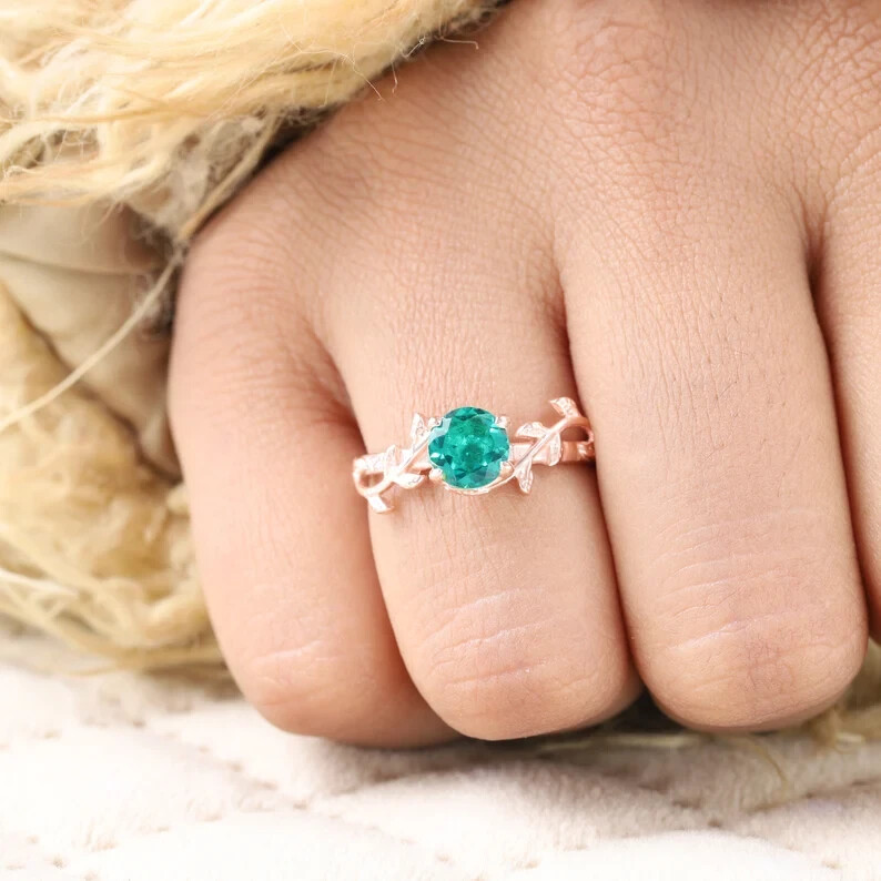 Certified Natural Emerald Round Cut Gemstone 14k Rose Gold Filled Stacking Ring
