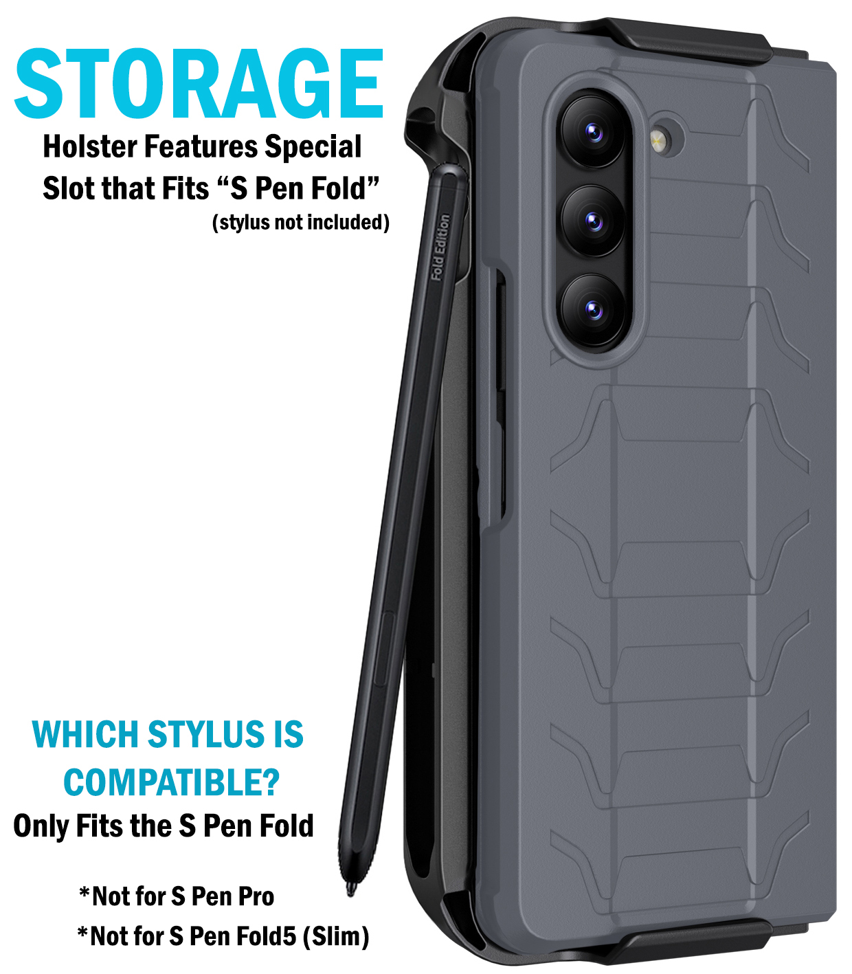 Rugged Case Holster Belt Clip with Stand and S Pen Holder for Galaxy Z Fold 5