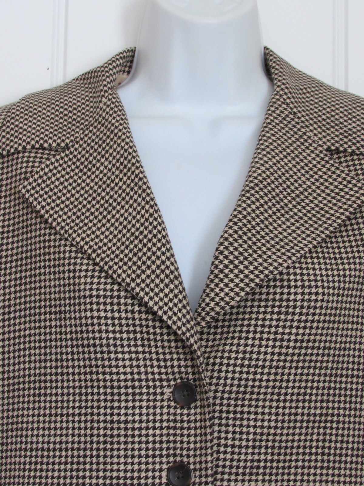 Linda Allard - Ellen Tracy Brown Wool Blend Houndstooth Plaid Blazer Jacket 4