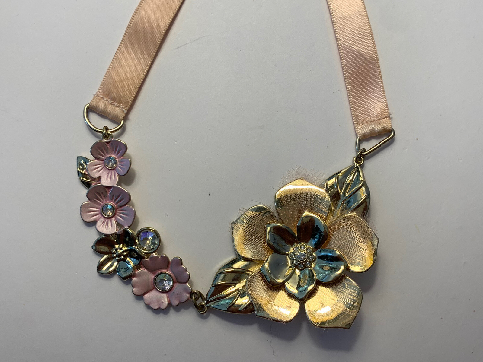 Disney Store London Girls Necklace Pink Ribbon Gold Pink Flowers Princess