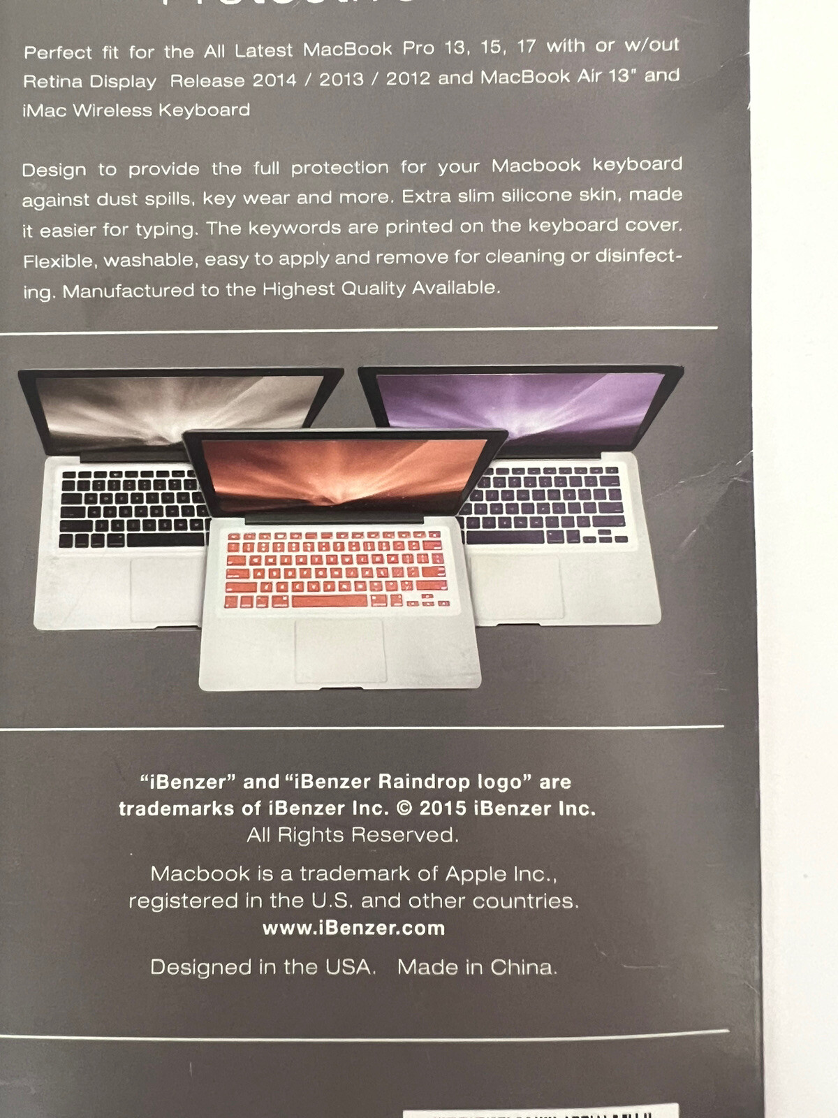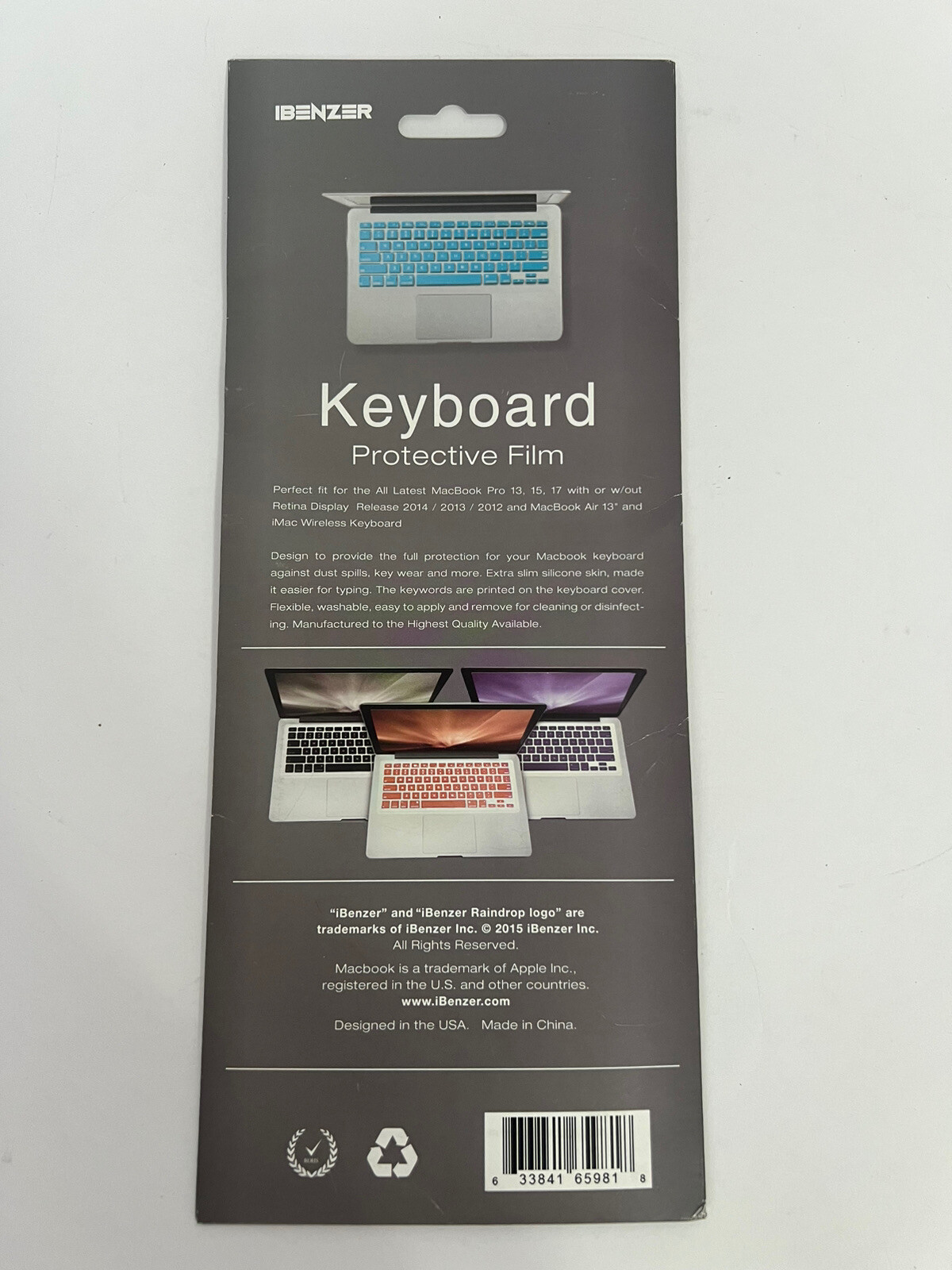 Ibenzer Silicone Keyboard Protective Film For MacBook Pro 13,15,17 w/out Retina
