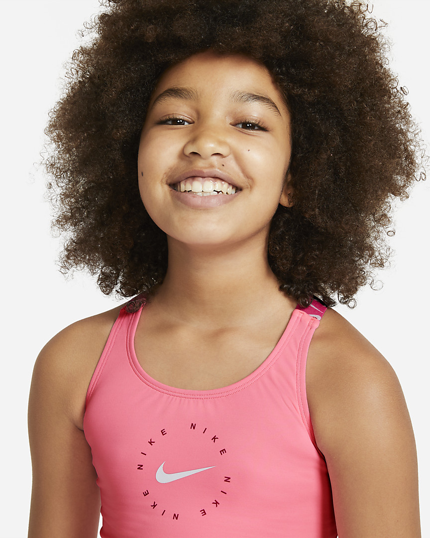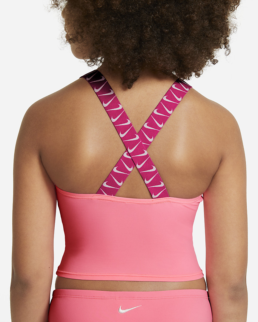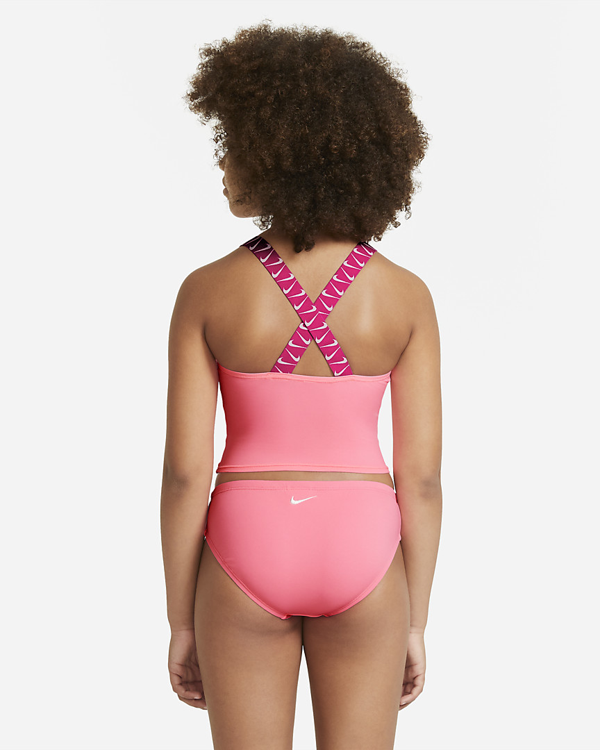Nike Girl's Logo Tape Pink Cross Back Tankini Set L72715 Size Large 12-13 YRS