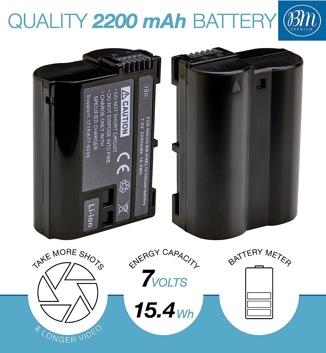 BM Premium 2X EN-EL15B Batteries and Charger for Nikon Z6, Z7, D500 Cameras