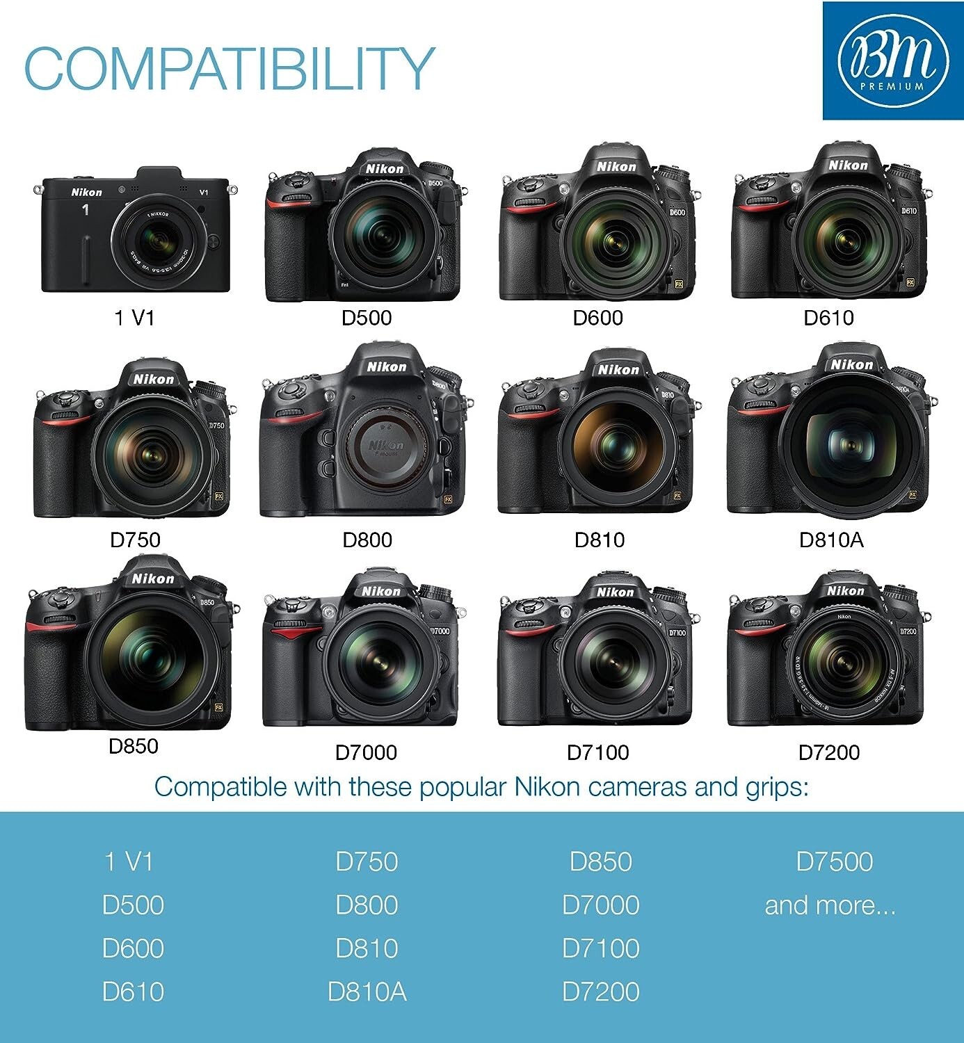 Совместимая модель: Nikon Z6, Nikon Z7, D850, D7500, 1 V1, D500, D600, D610, D750, D800, D810, D7000, D7100, D7200
