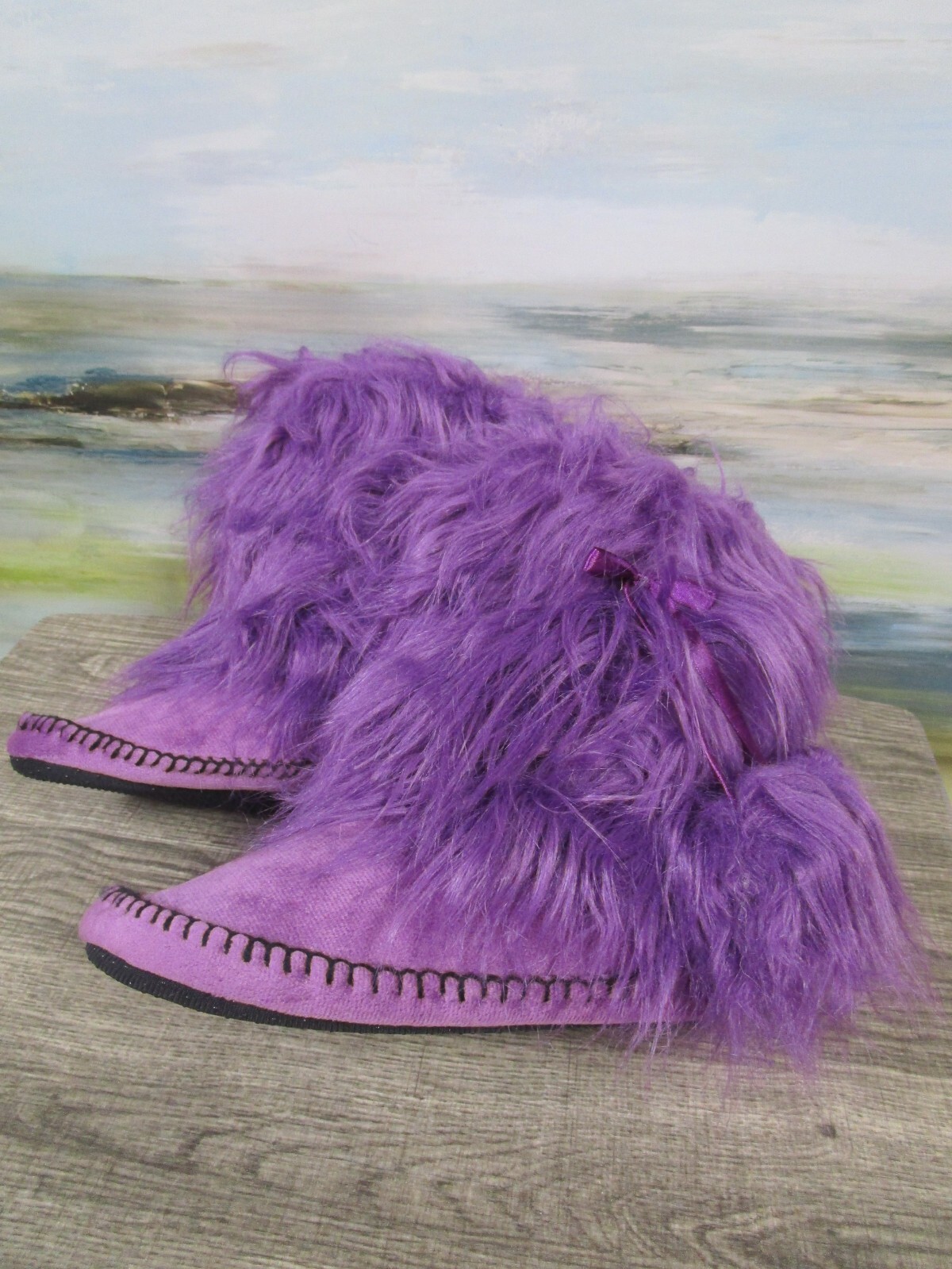 Adrienne Landau Fuzzy Booties Purple Faux Fur Slip On Comfort NEW