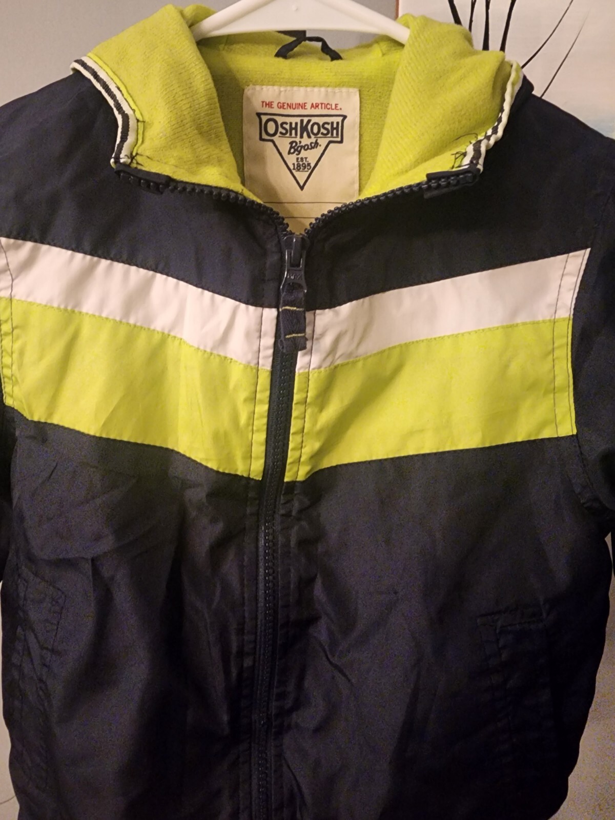 как выглядит Osh Kosh Bgosh Boys Blue/ Green Fleece Lined Hooded Light Jacket Size S/ 4 фото