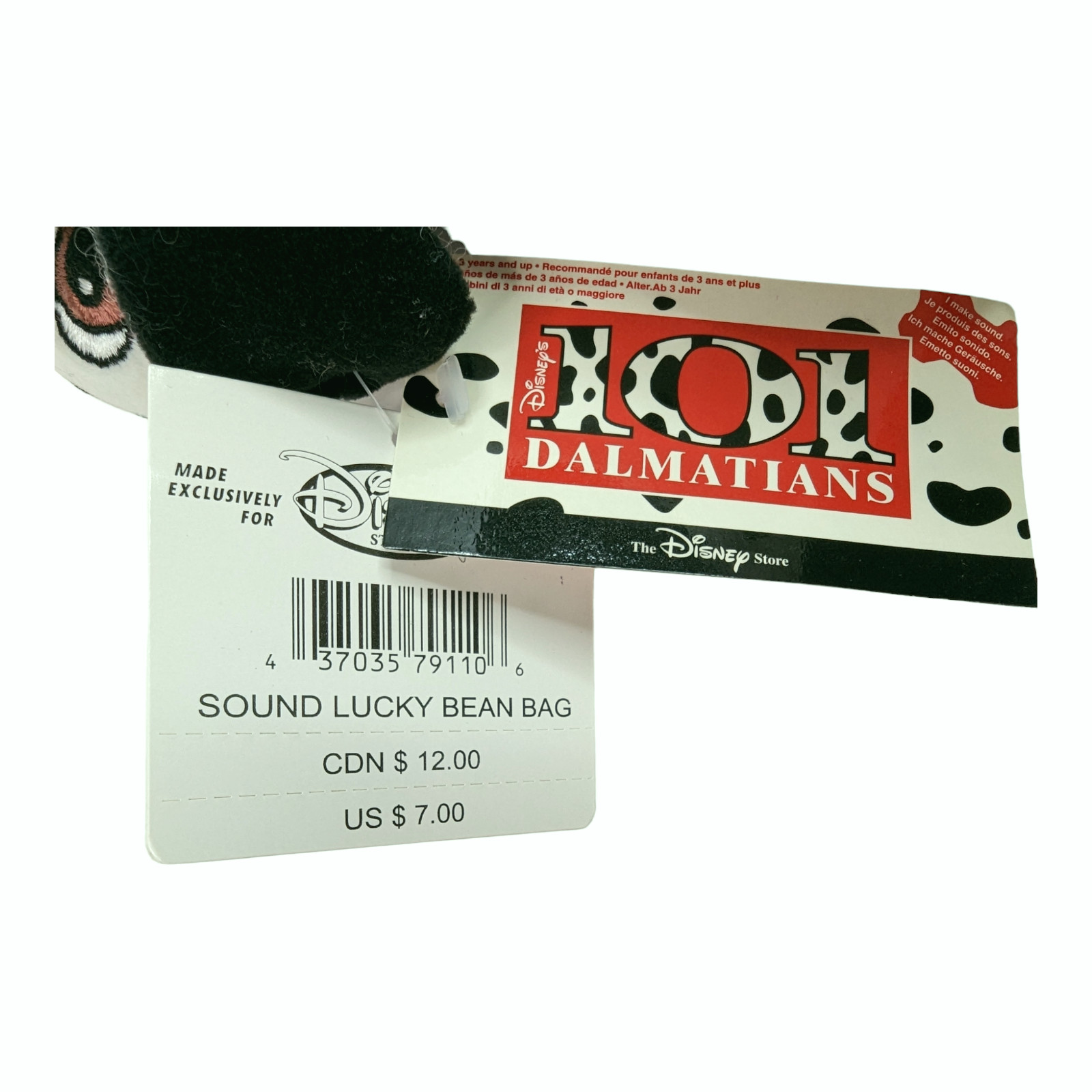 Disney 101 Dalmatians Lucky w/ sound Beanie Bean Bag Plush all Tags Near Mint