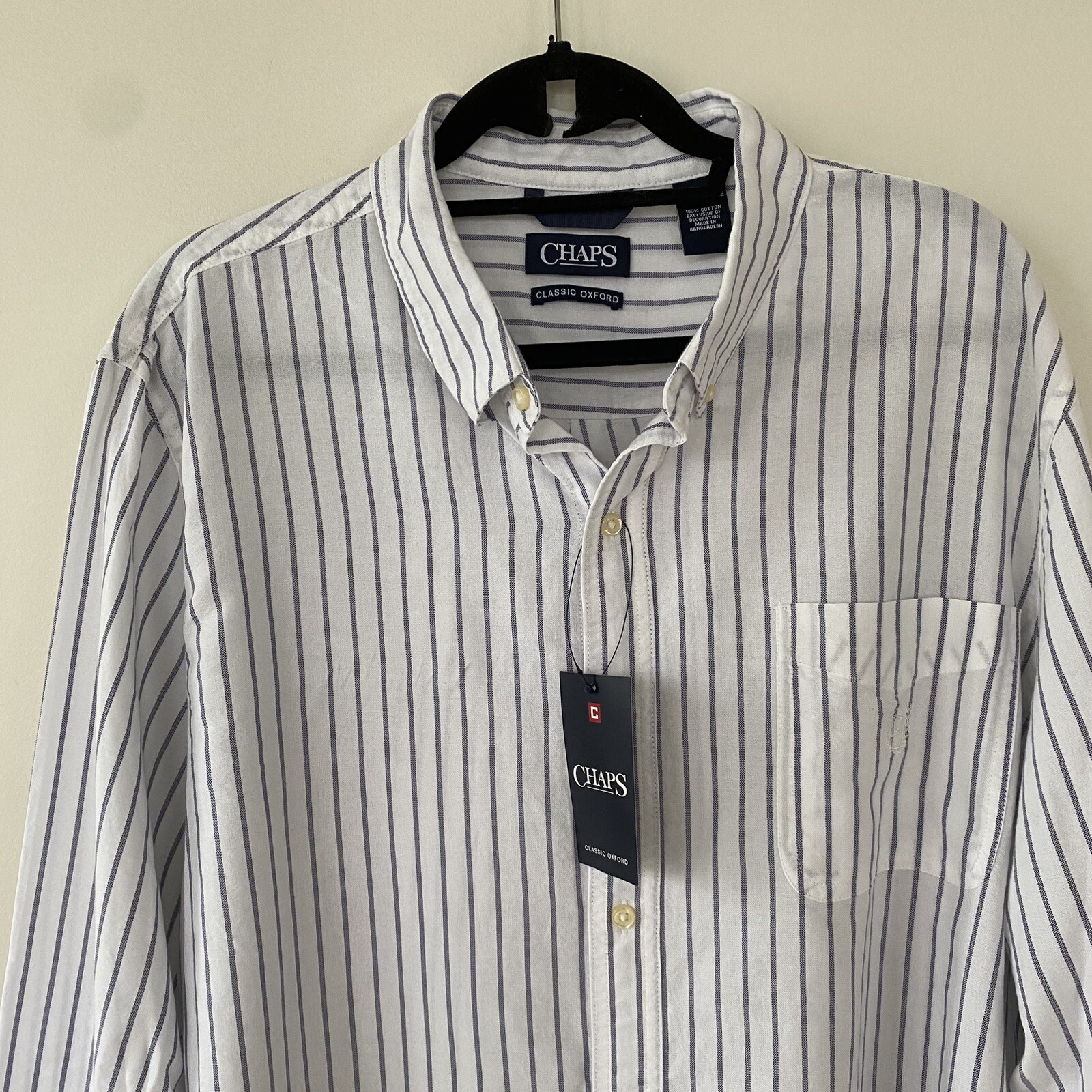 как выглядит Chaps Mens Classic-Fit Oxford Shirt Blue White Stripe Button Down Collar XXL NEW фото