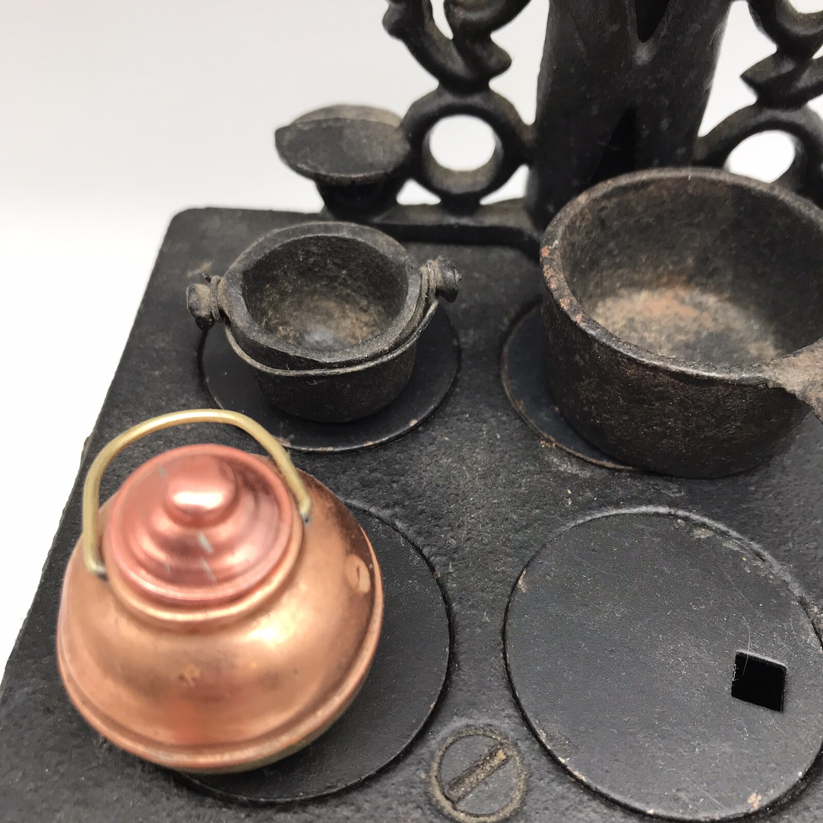 как выглядит Vintage Black Cast Iron Crescent Stove Salesman Sample / Children