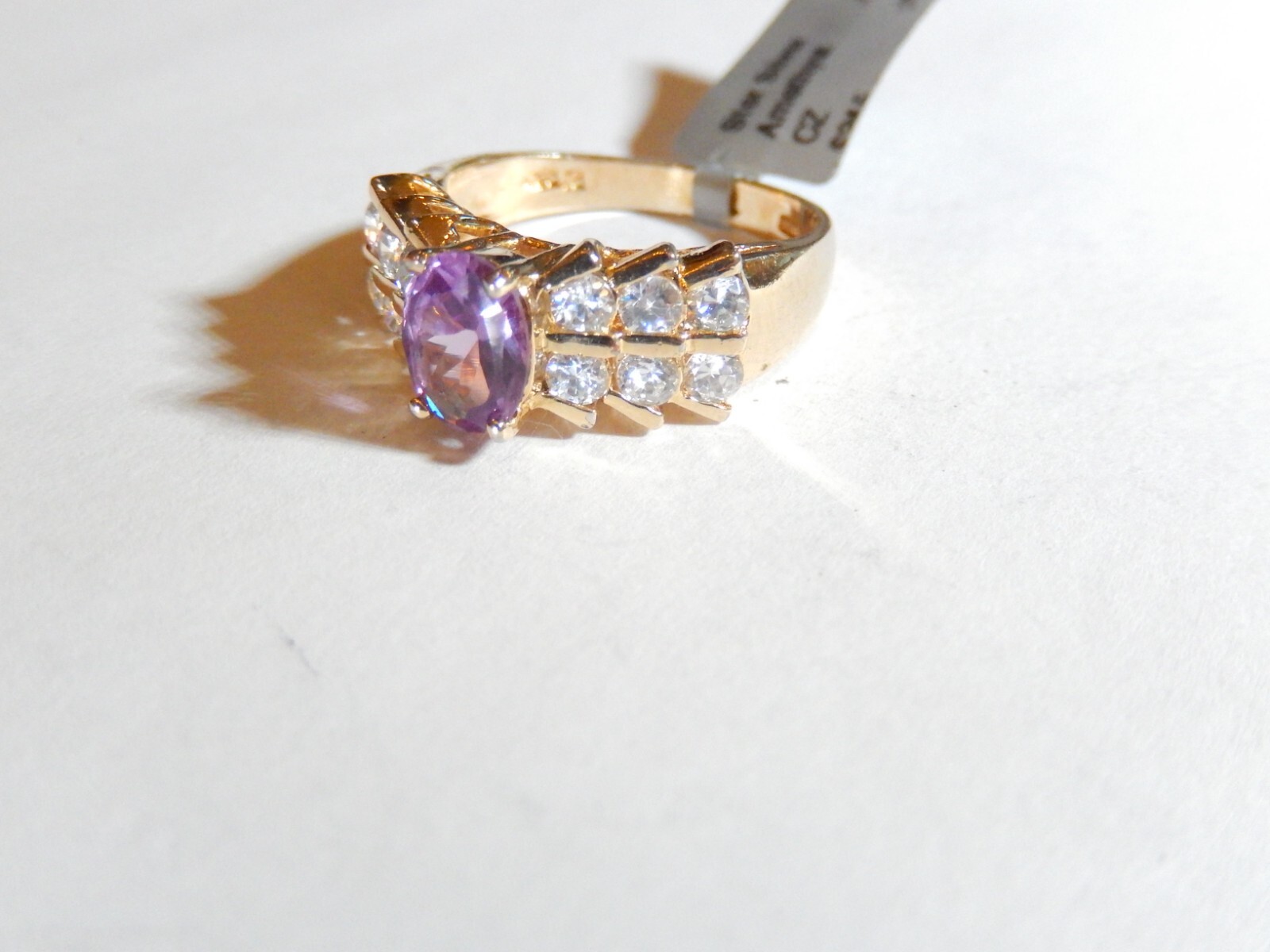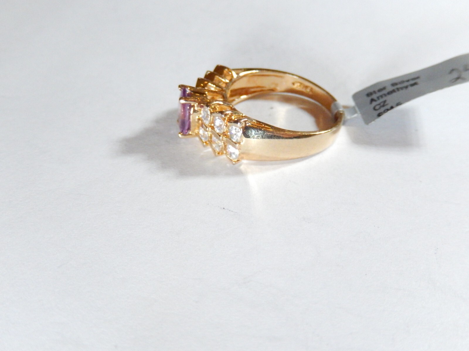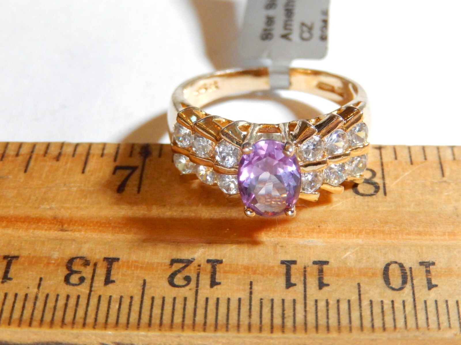 как выглядит VINTAGE Sterling Silver Gold Vermeil 2.25 CT Amethyst/CZ Statement Ring SZ8.75 фото