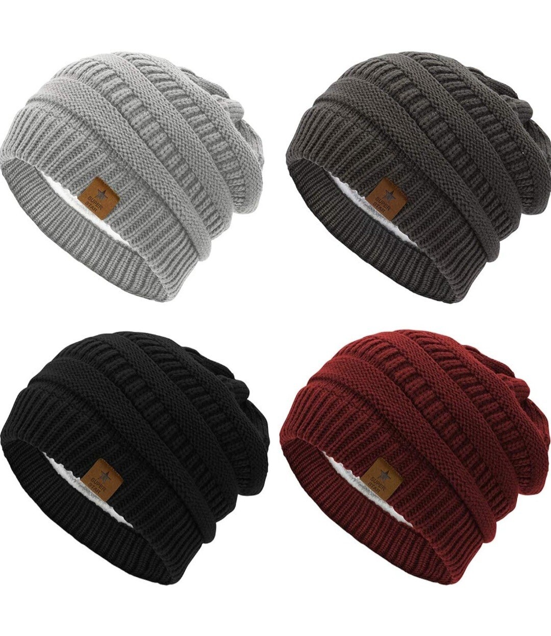 Winter Thick Solid Fleece Lined Beanies for Women Men Unisex