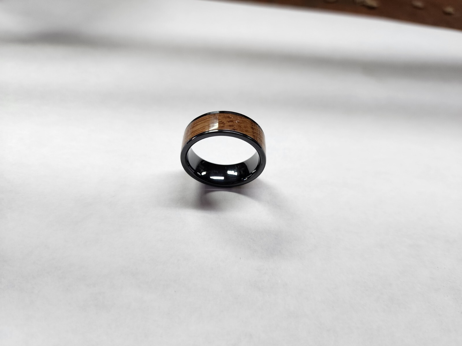 как выглядит Oak Wood Men Ring, Band - Whiskey Barrel Wood Inlay, Men Ceramic Core, Ring 8mm фото