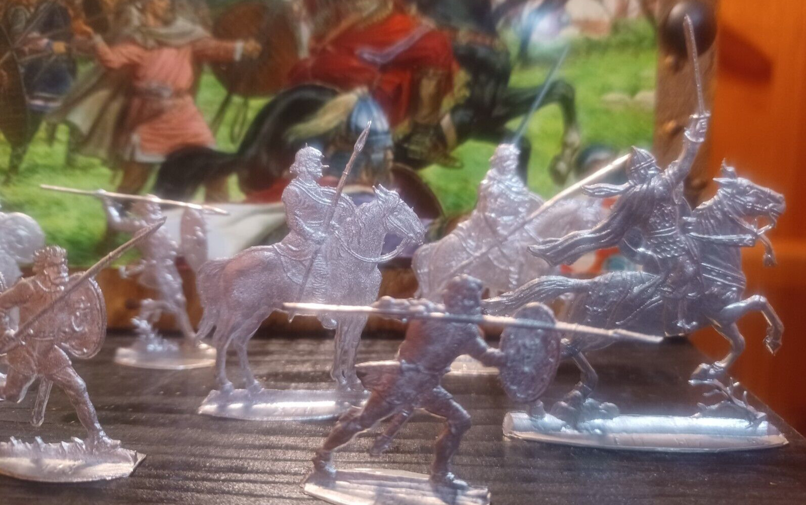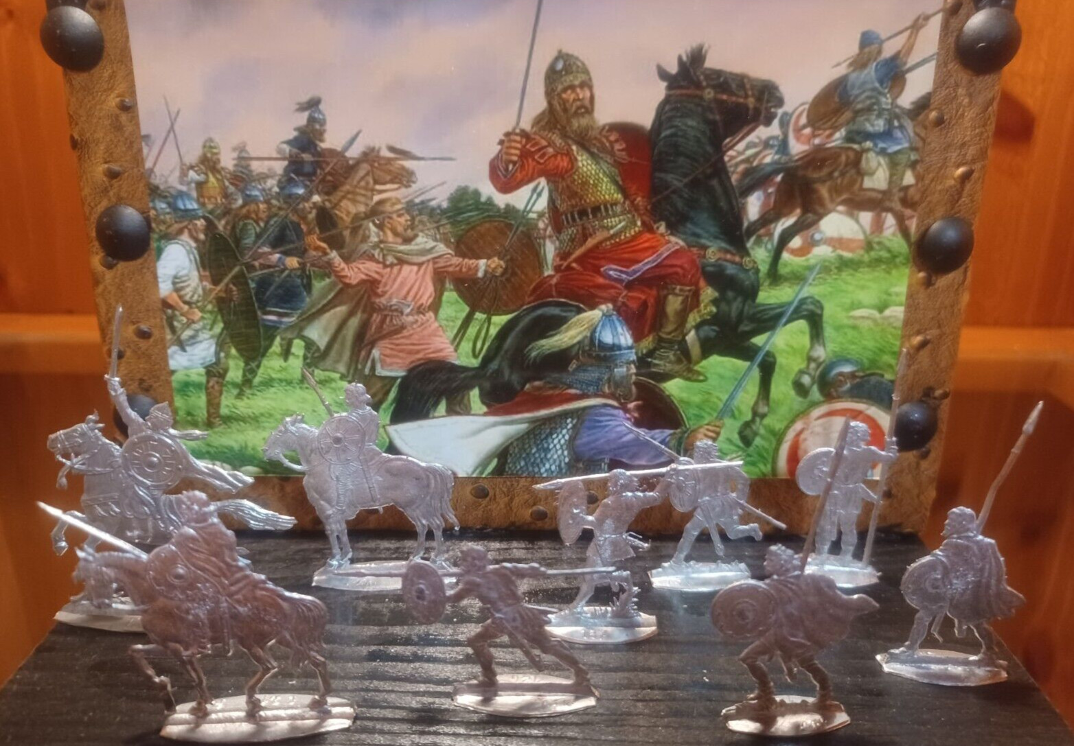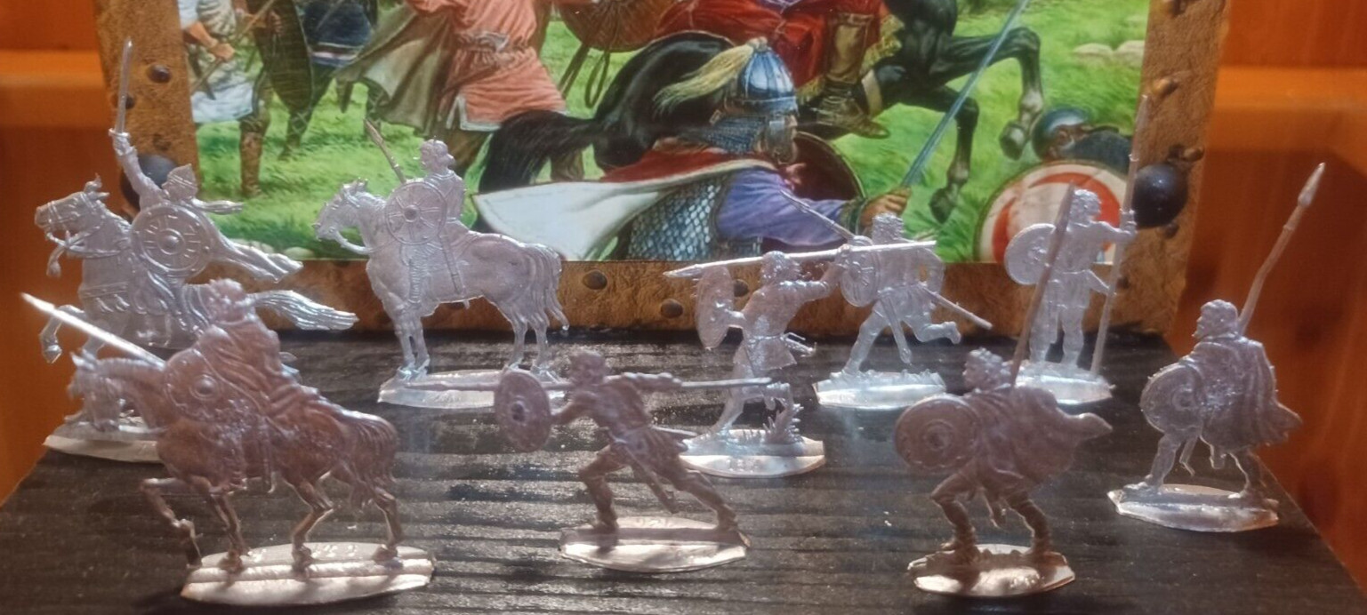 как выглядит Zinnfiguren Flats Germanic Warrior Barbarian Miniatures Lot 9 with Display Std фото
