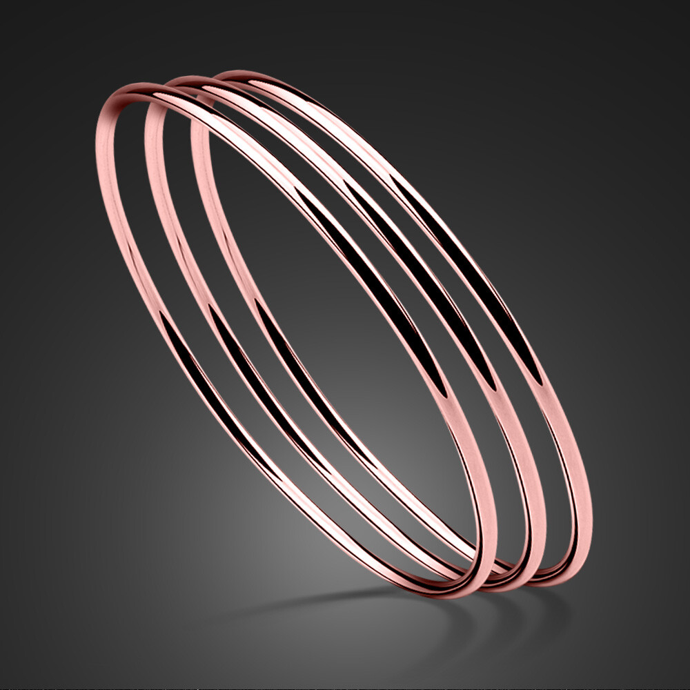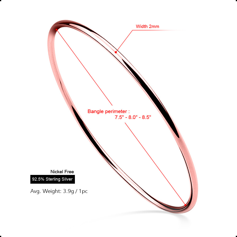 Solid 925 Sterling Silver 3 Colors Round Circle Bangle Bracelet for Women Girls