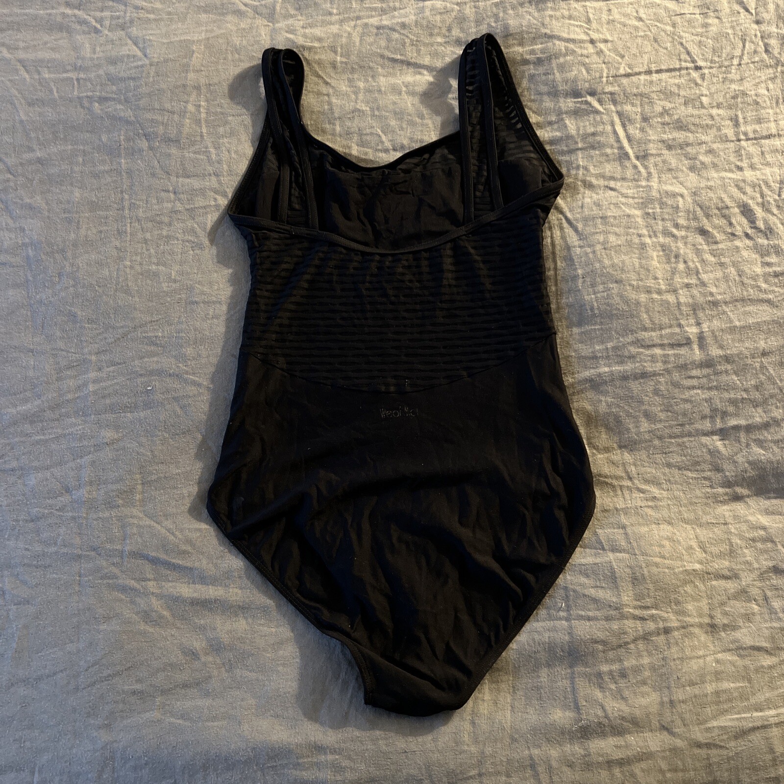 как выглядит Wear Moi Black Mesh Stripe Tank Leotard- Size M фото