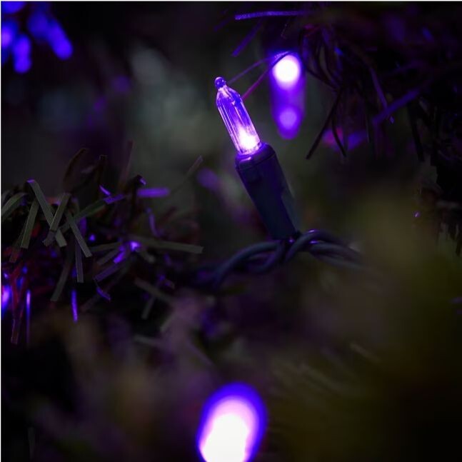 как выглядит GE StayBright 100-Count 24.75-ft Constant Purple Mini LED Plug-In Christmas фото