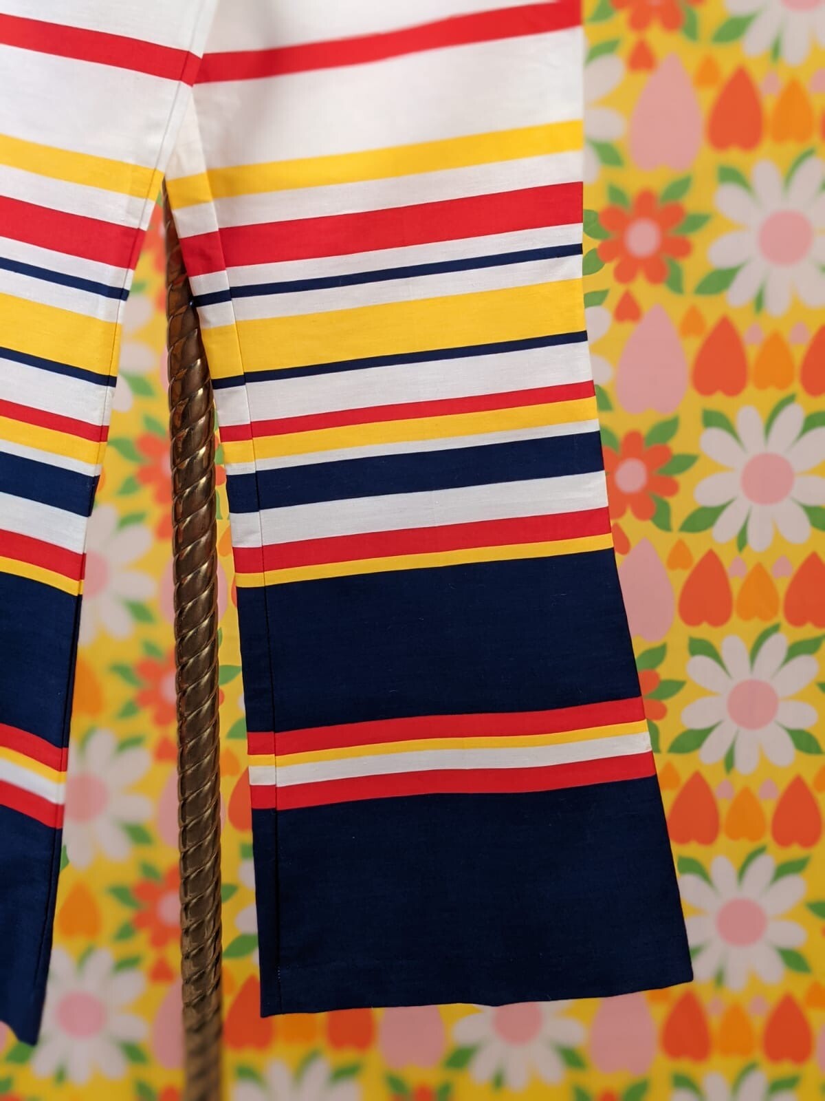 как выглядит DEADSTOCK 1970 S MULTI COLOR STRIPED BELL BOTTOMS COTTON PANTS фото
