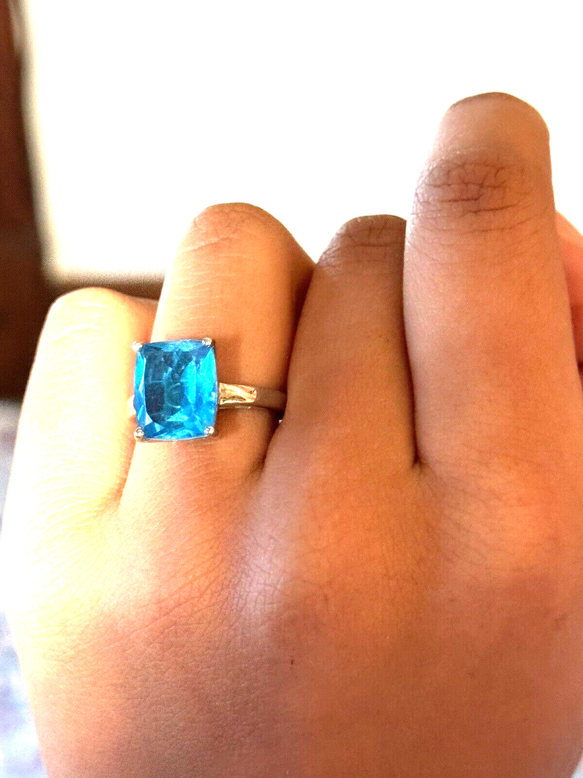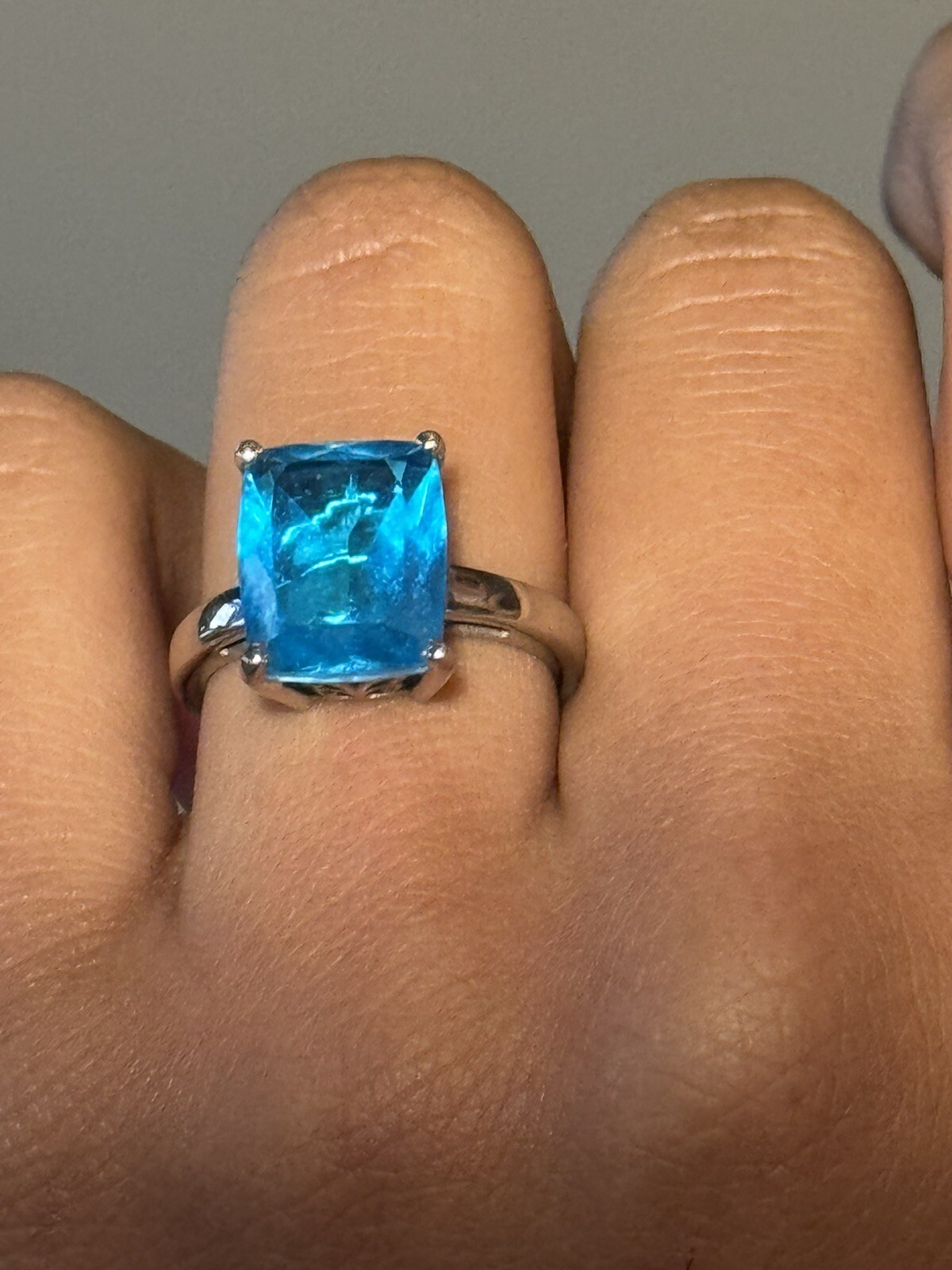 как выглядит Hot Blue Colored Shiny Bright Spinel Sterling Ring Size 6.75 Four Prong "J. Glo" фото