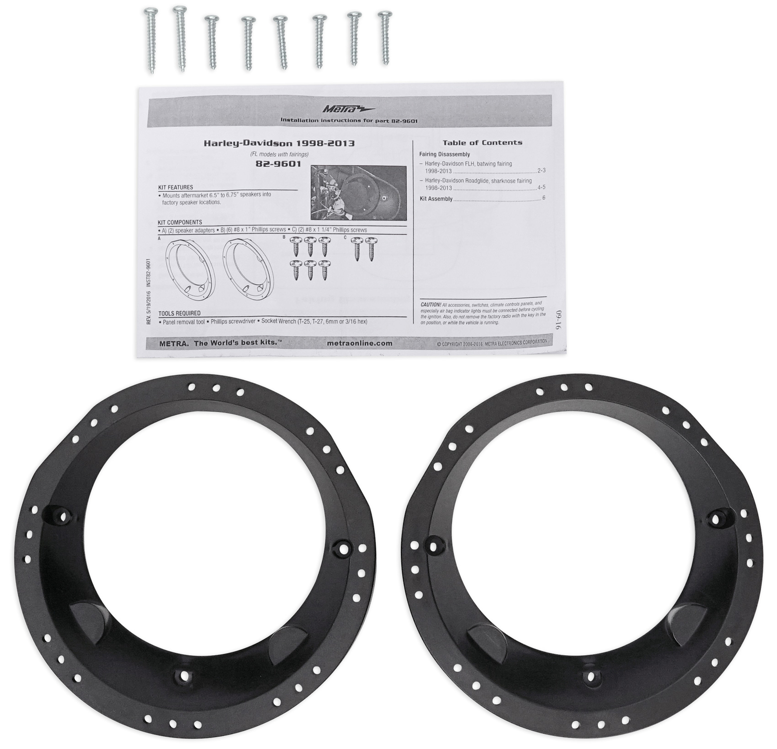 METRA 82-9601 98-13 Harley Davidson Touring 6.5 to 6.75 Speaker Adapter Plate
