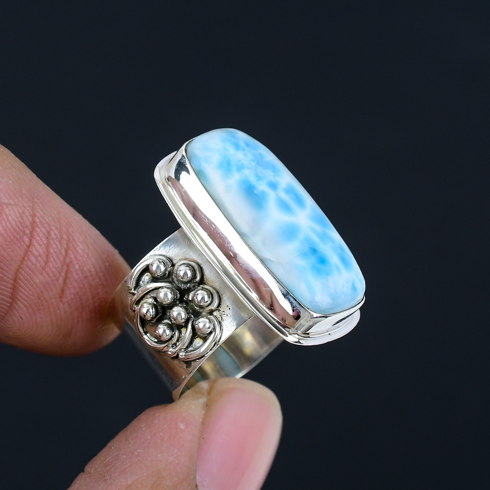Larimar Gemstone Solid 925 Sterling Silver Handmade Statement Ring Jewelr CS-074
