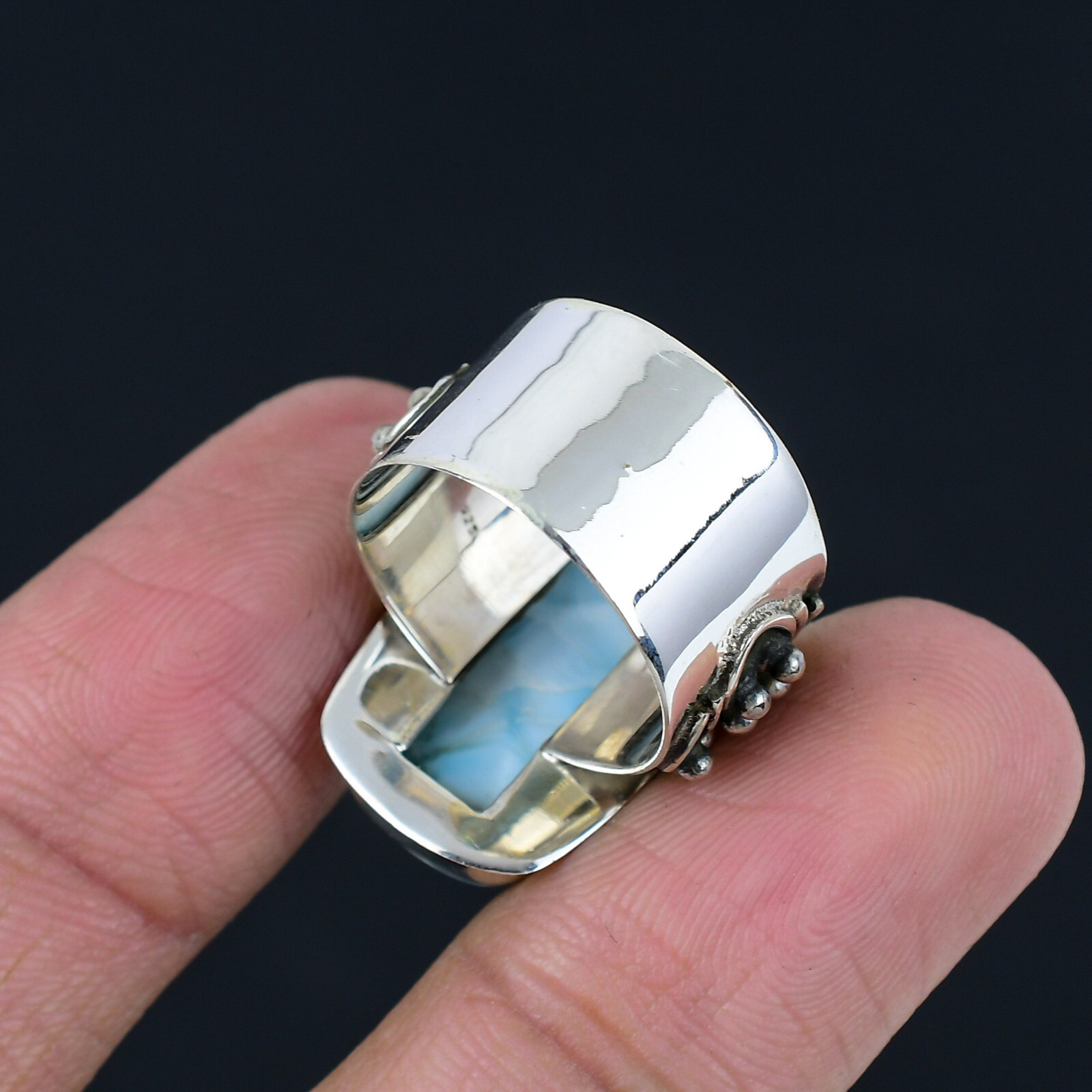 как выглядит Larimar Gemstone Solid 925 Sterling Silver Handmade Statement Ring Jewelr CS-074 фото
