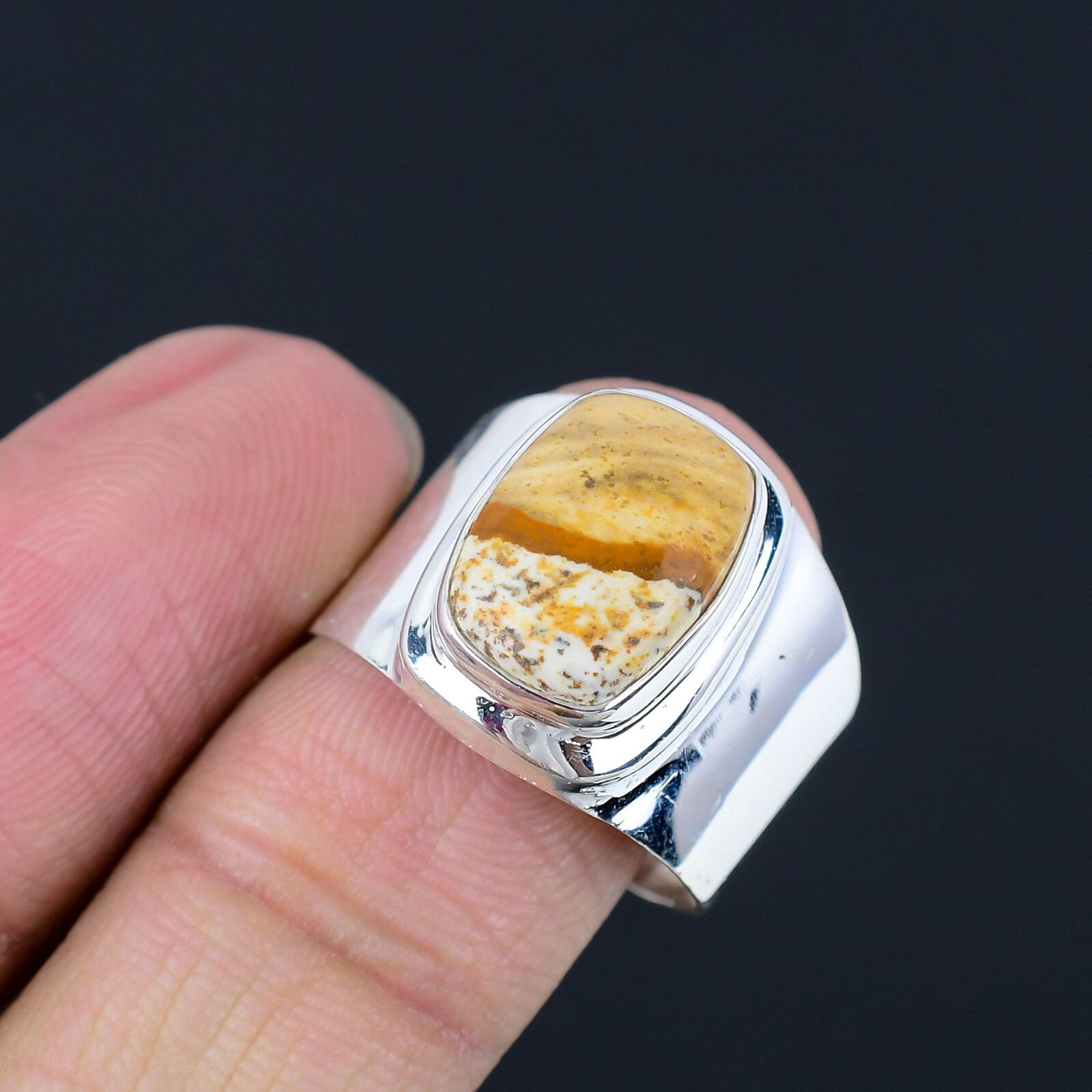 Picture Jasper Gemstone Solid 925 Sterling Silver Ring Jewelry For Women HR-214
