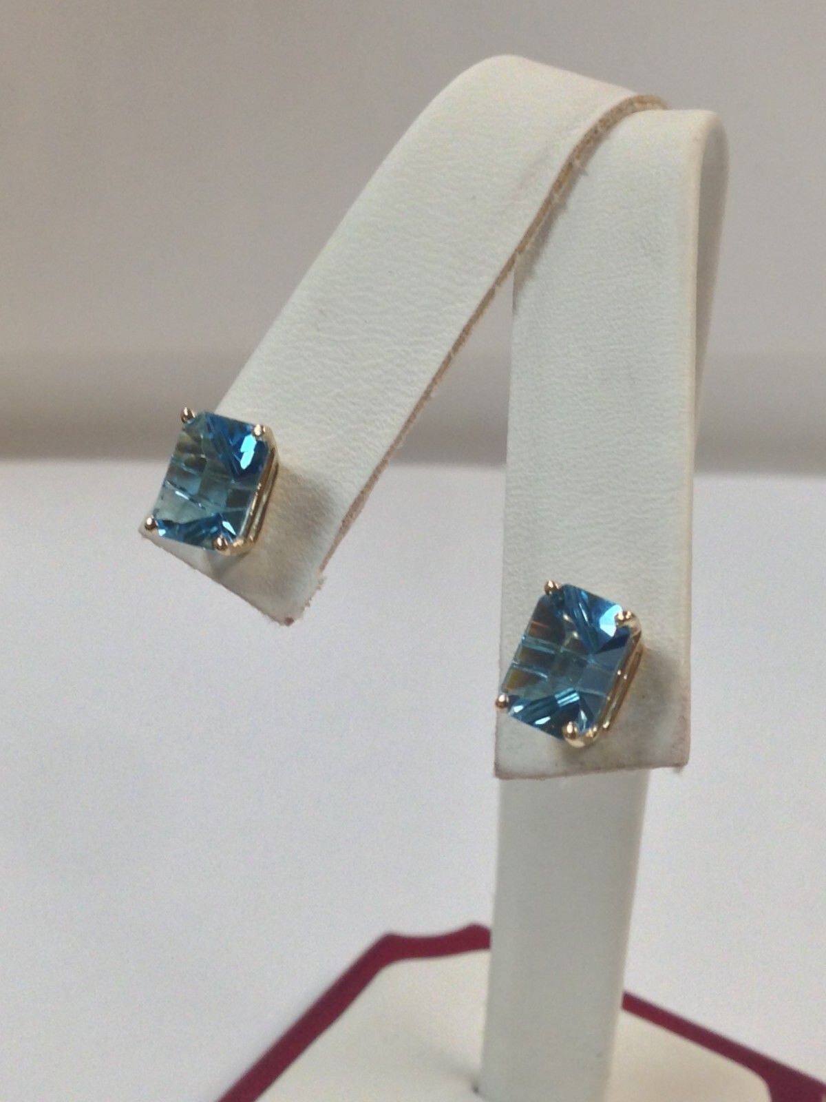 Natural Blue Topaz Stud Earrings Solid 14kt Yellow Gold