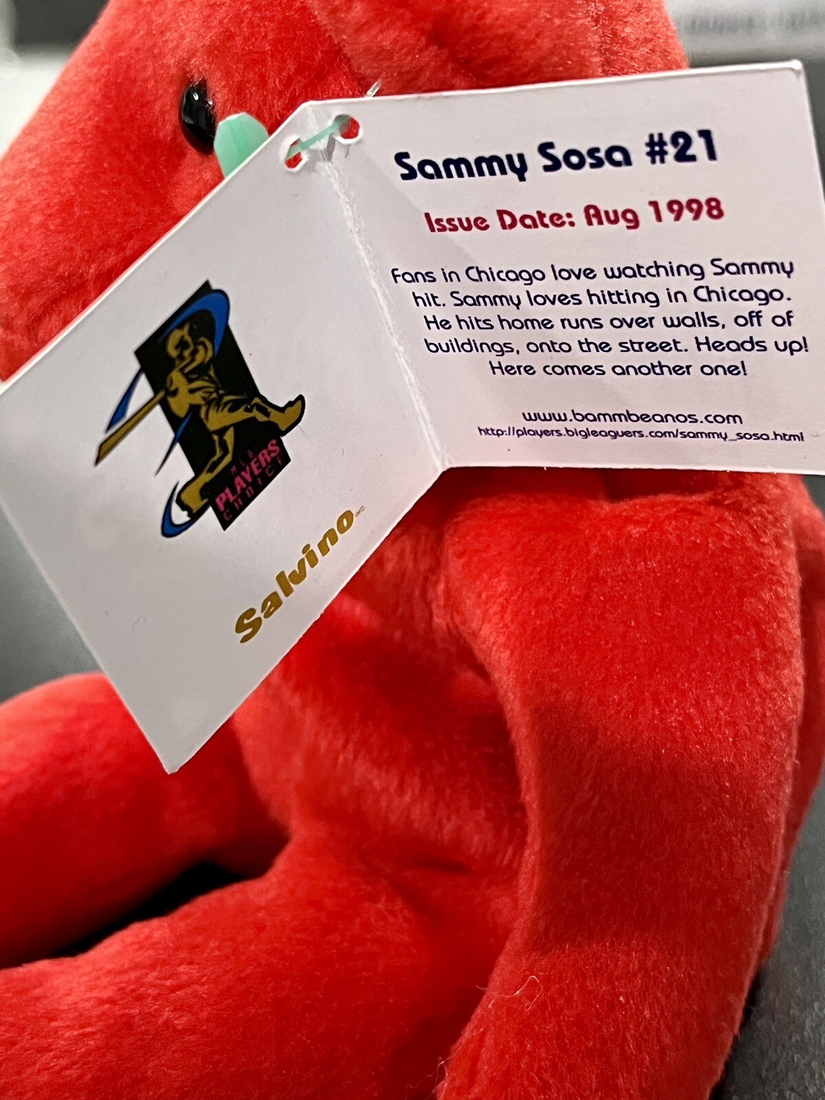 Salvino's Bamm Beano's MLB Sosa 21 Red Plush Beanie Bear New