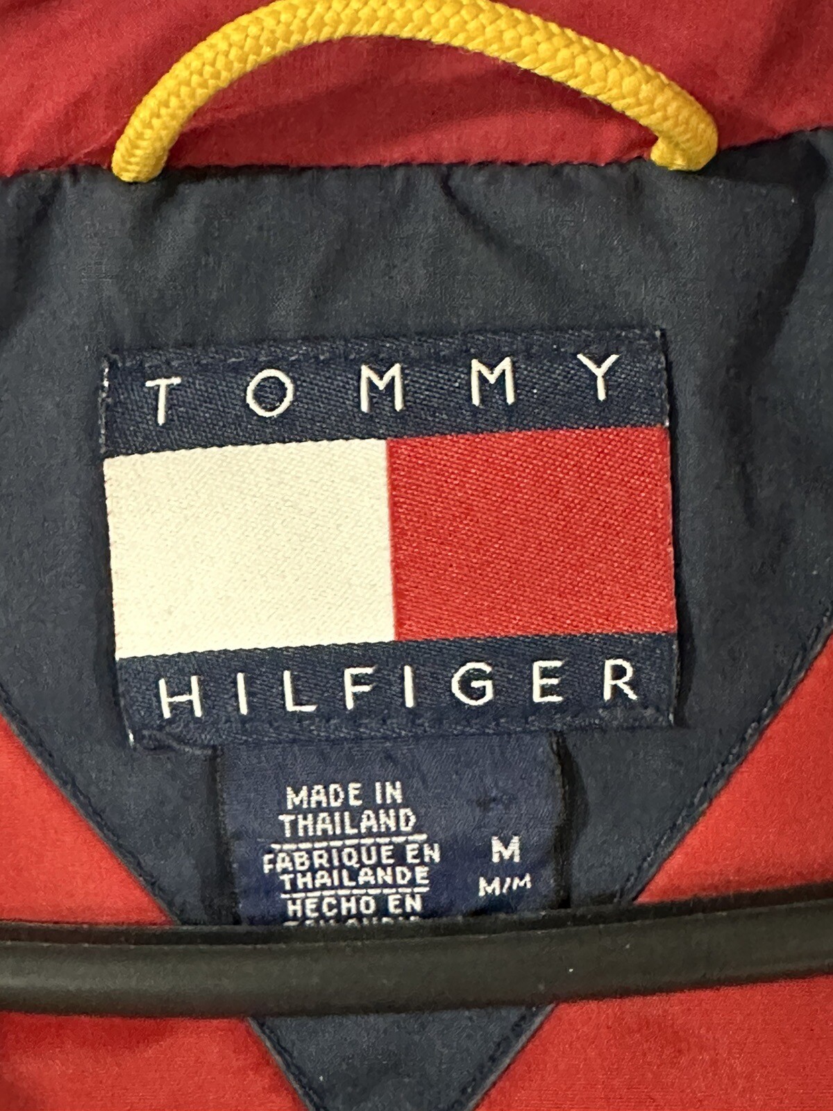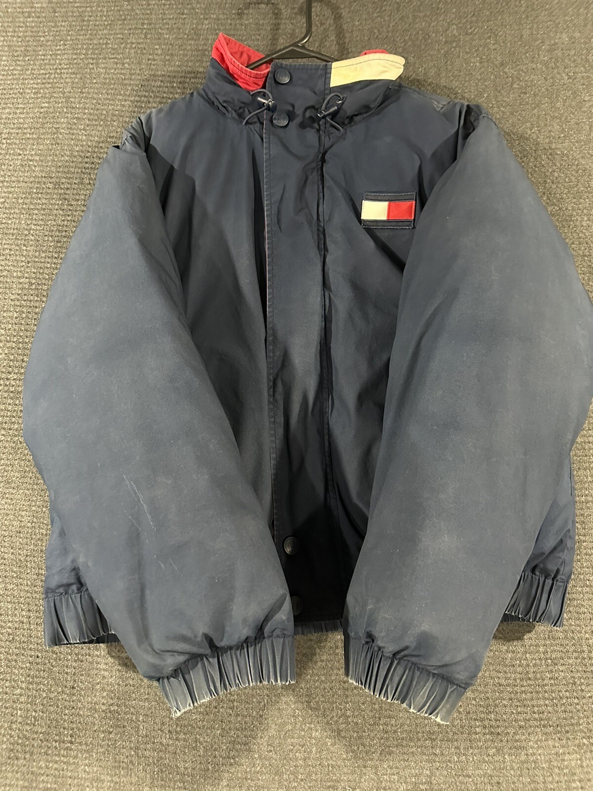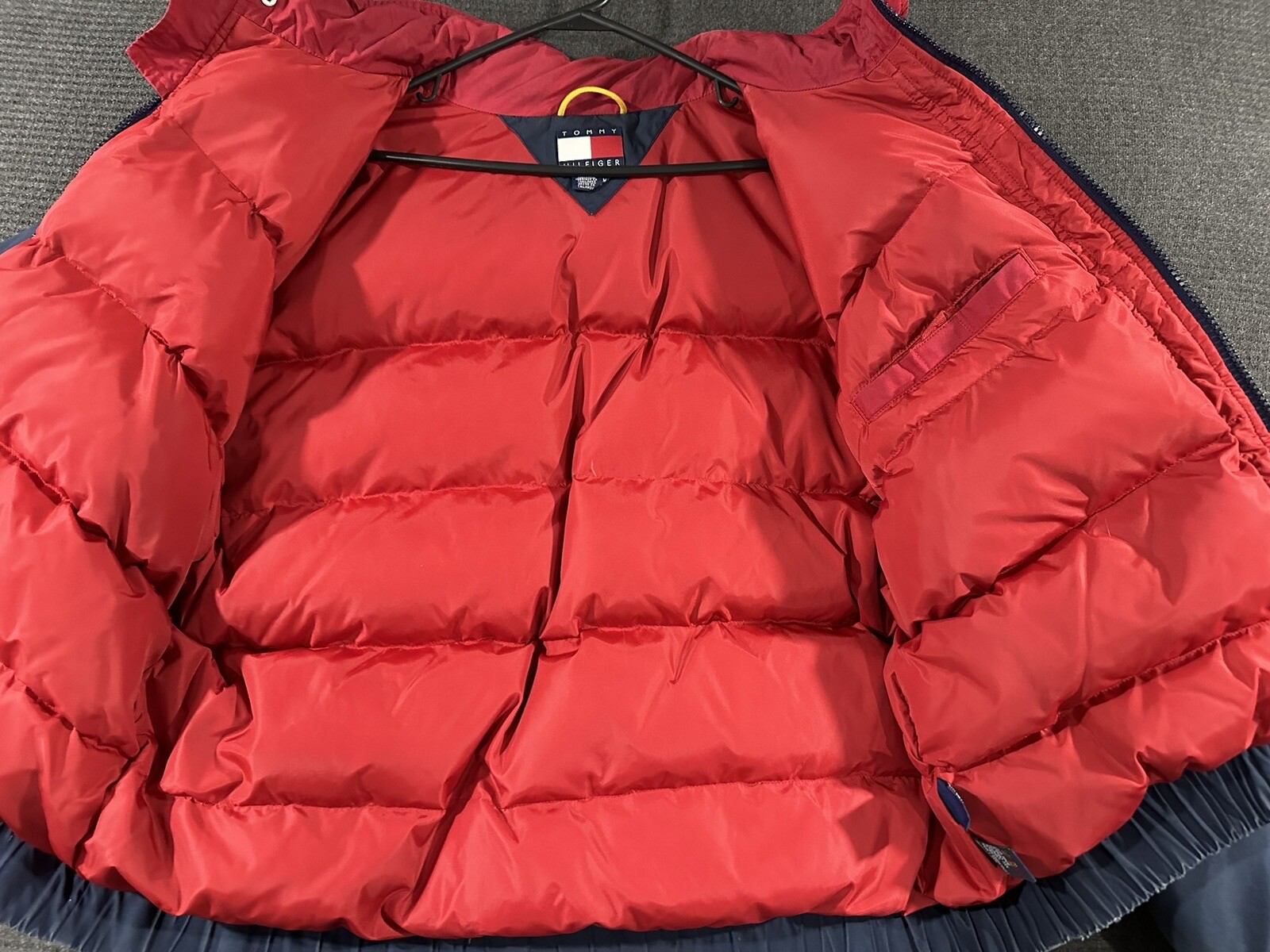 как выглядит Tommy Hilfiger Down Puffer Jacket Medium Blue Hooded Vintage 90s Y2K Distressed фото