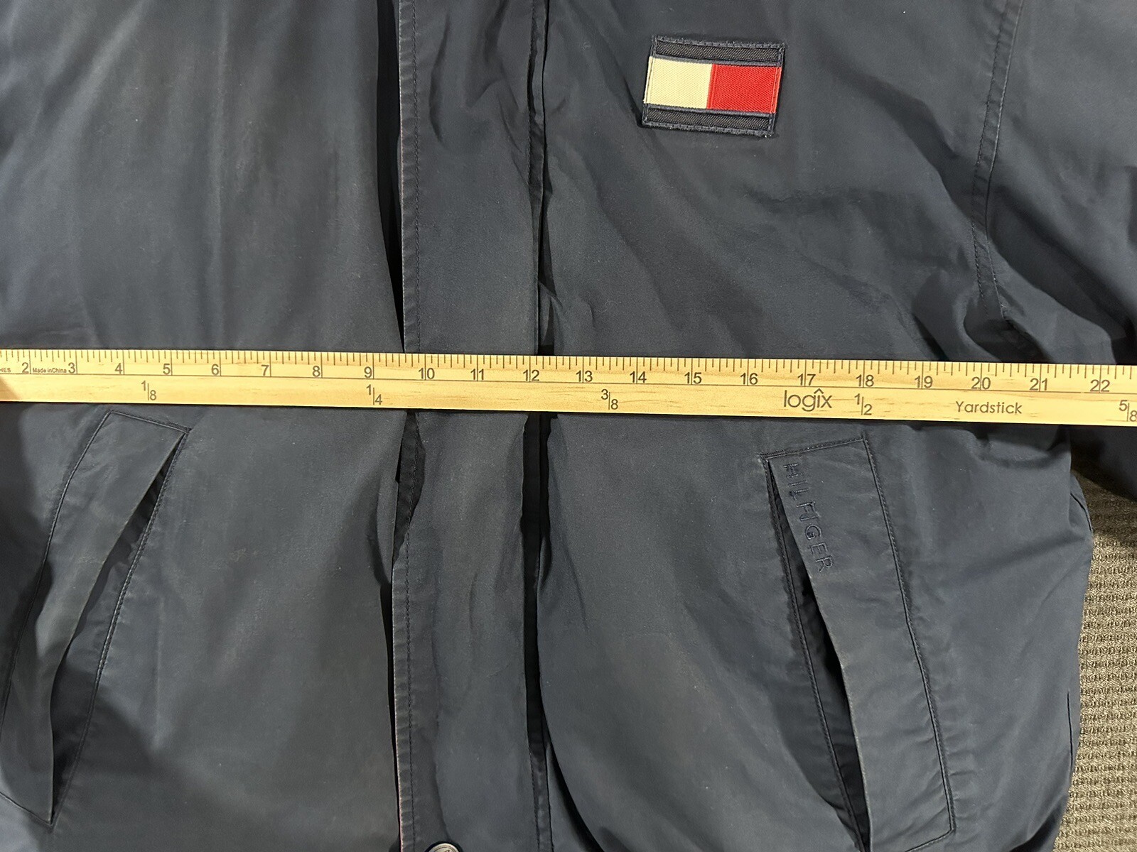 Tommy Hilfiger Down Puffer Jacket Medium Blue Hooded Vintage 90s Y2K Distressed