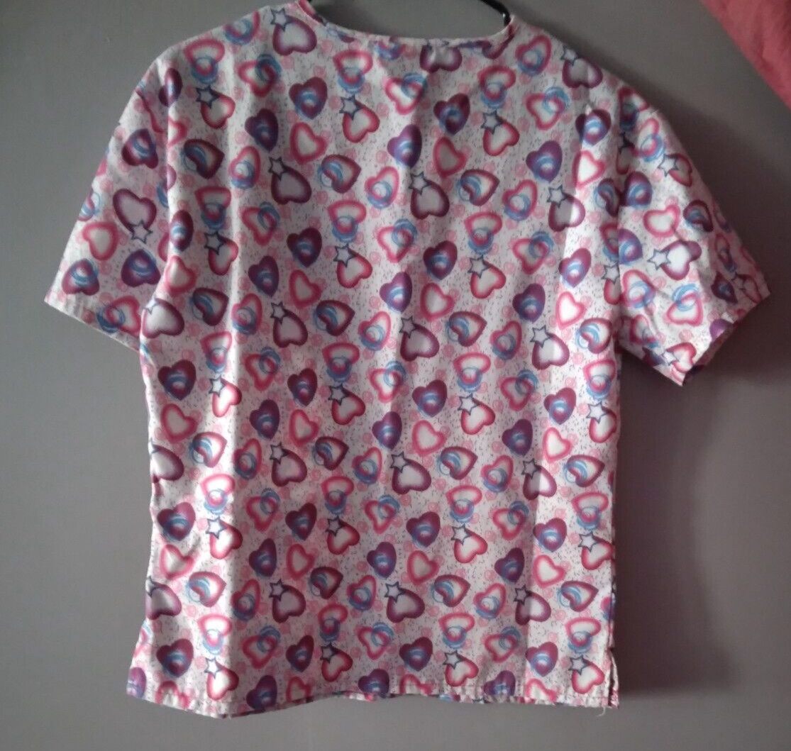 EUC Great Womans XS Scrub Top. Excellent Used Condition. Colorful Hearts Pattern