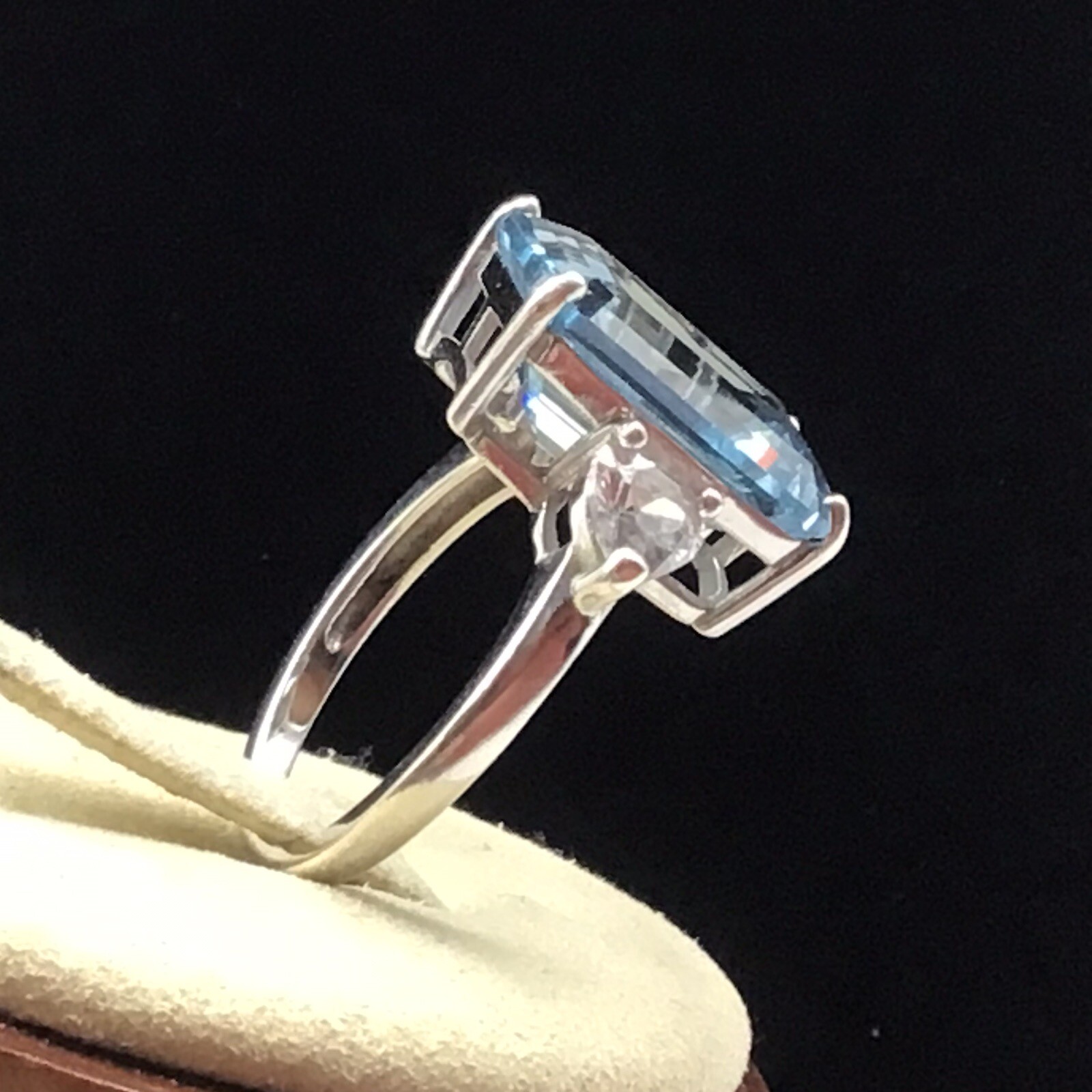 как выглядит Sterling Silver Large Blue Topaz Ring 6g Size 7.75 фото