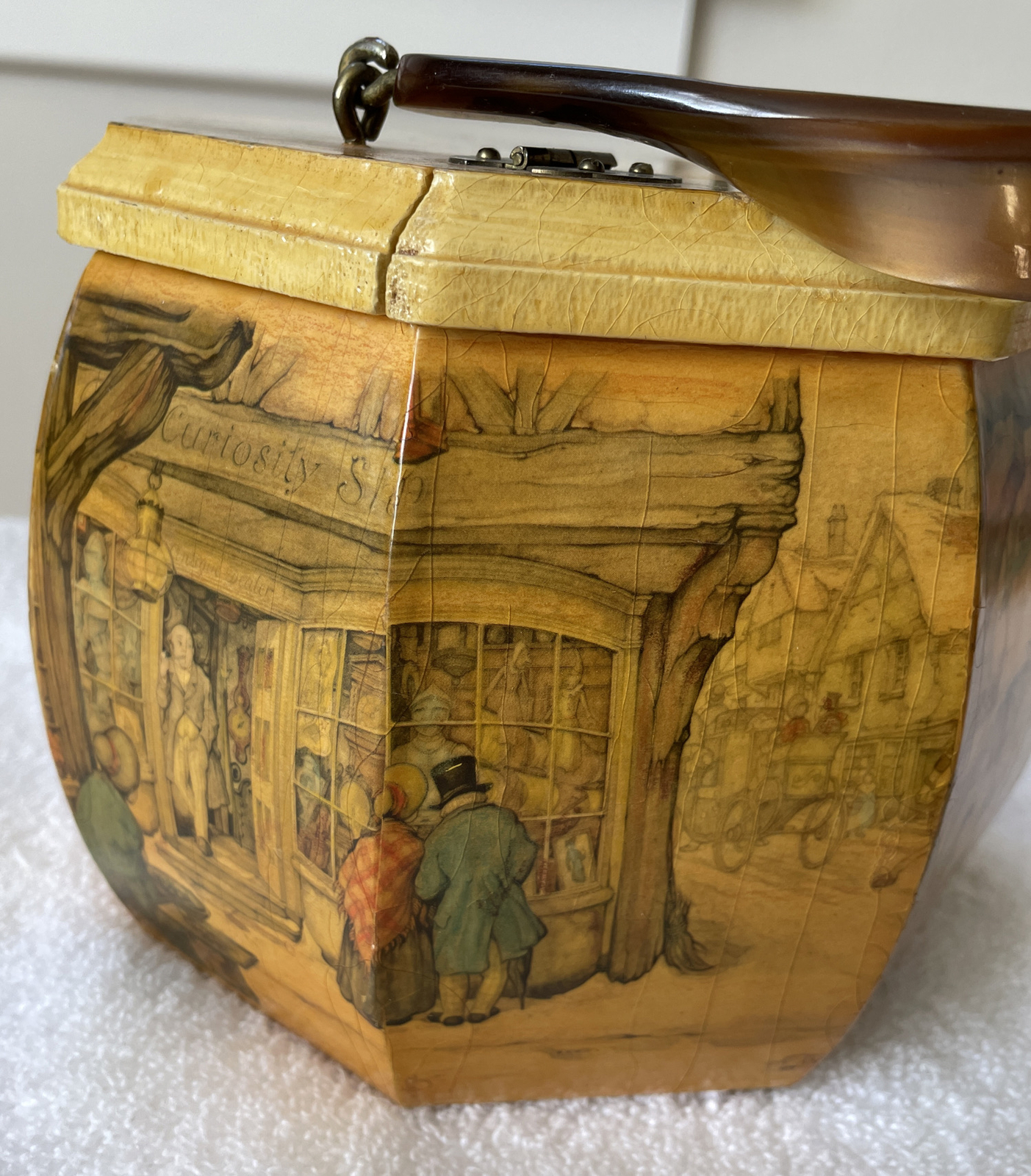 как выглядит Vintage Anton Pieck Town Scene Octagonal Purse / Notions Box With Lucite Handle фото
