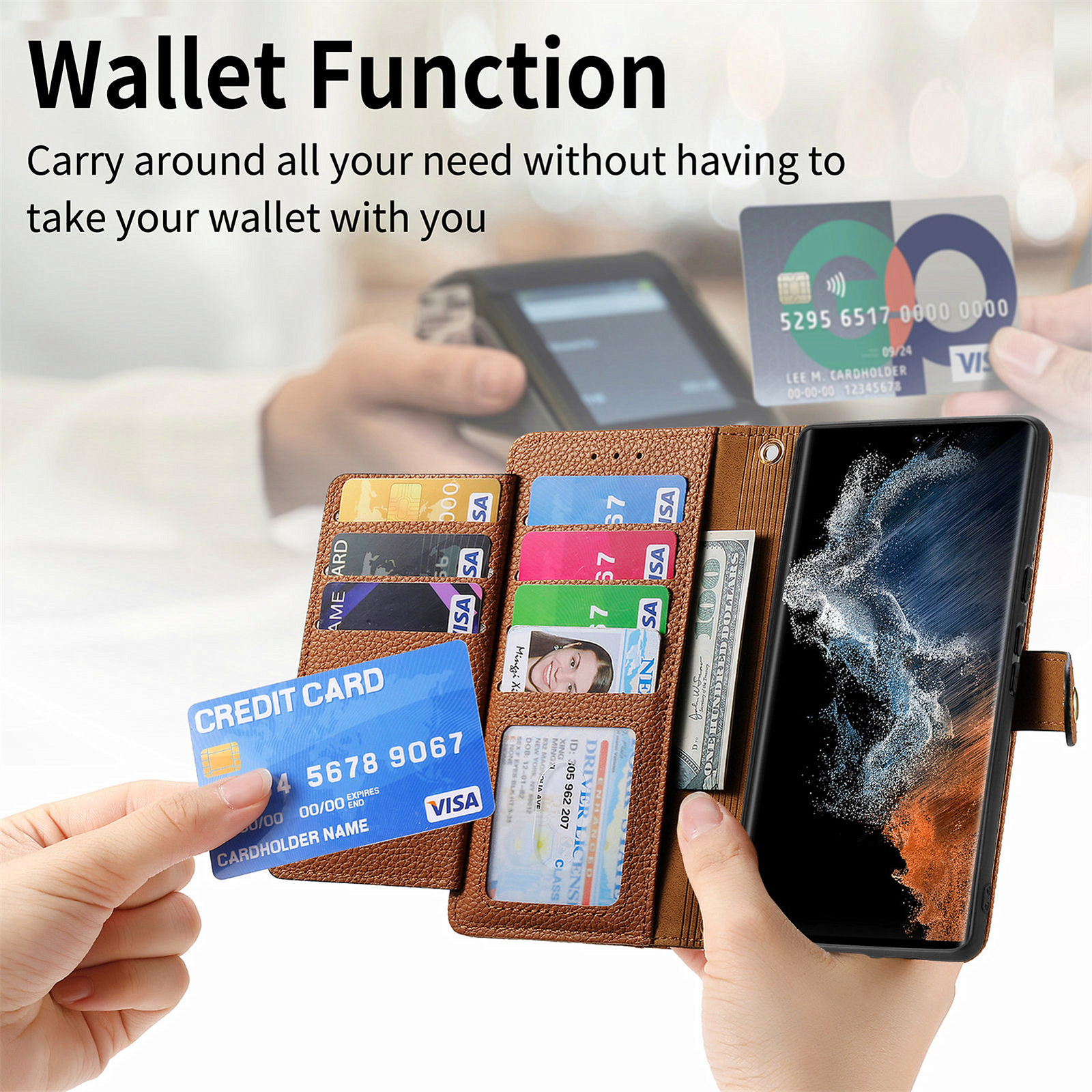 как выглядит For Samsung Galaxy S25 Ultra S24FE S23 S22 RFID Blocking Card Holder Wallet Case фото