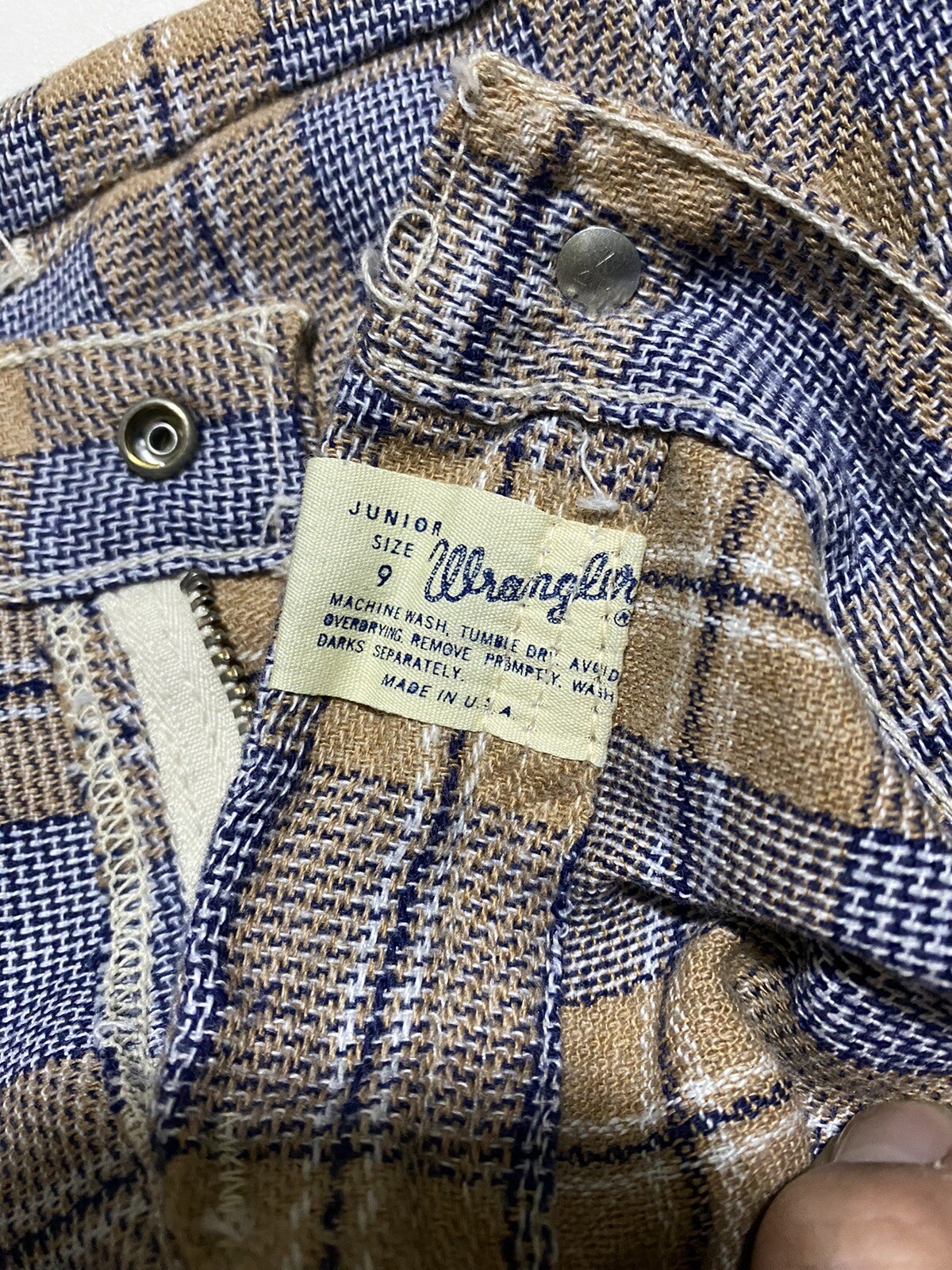 Vintage Wrangler Plaid Bell Bottom Jeans 60s 70s Juniors 9 Modern 28x30