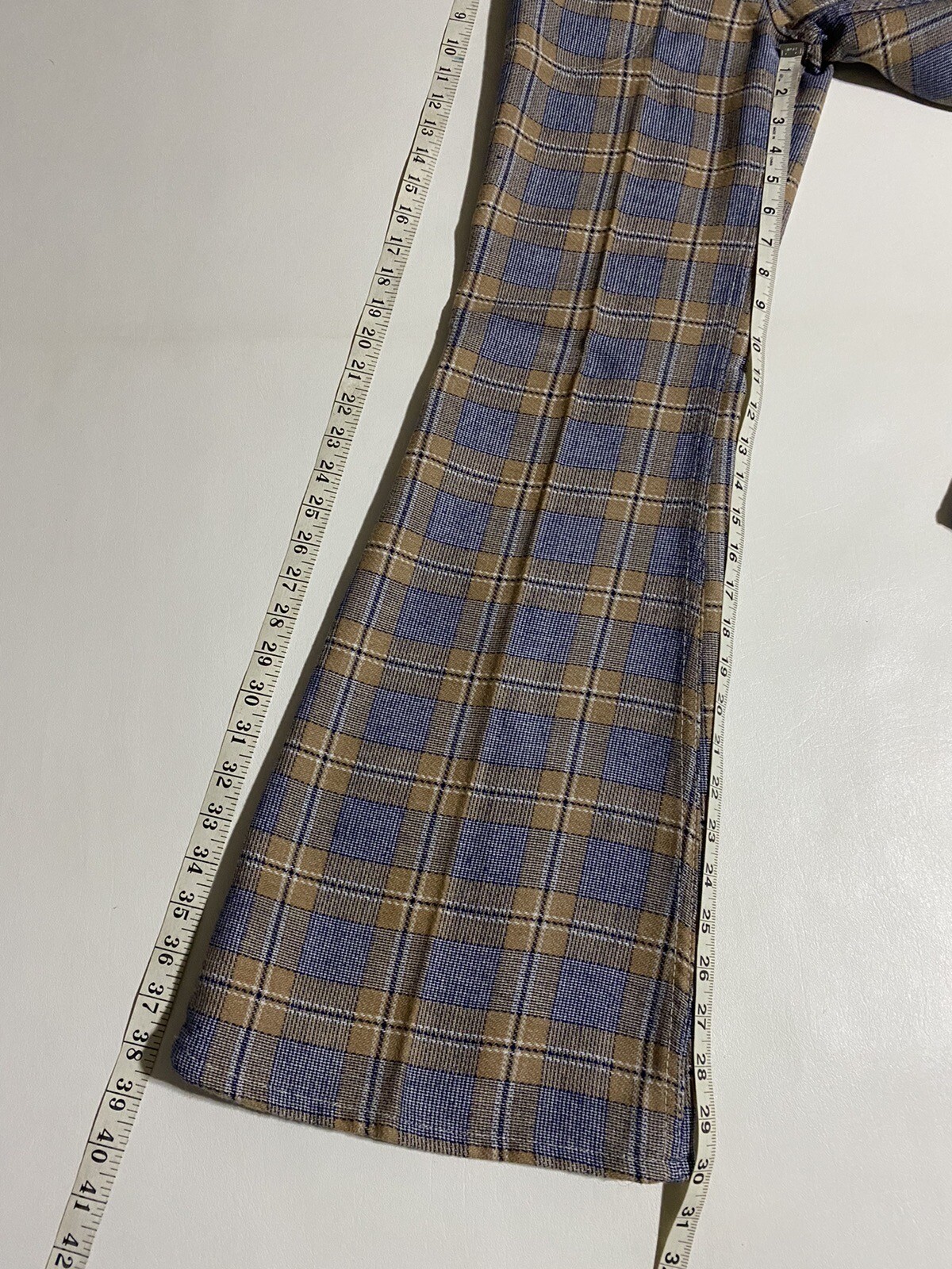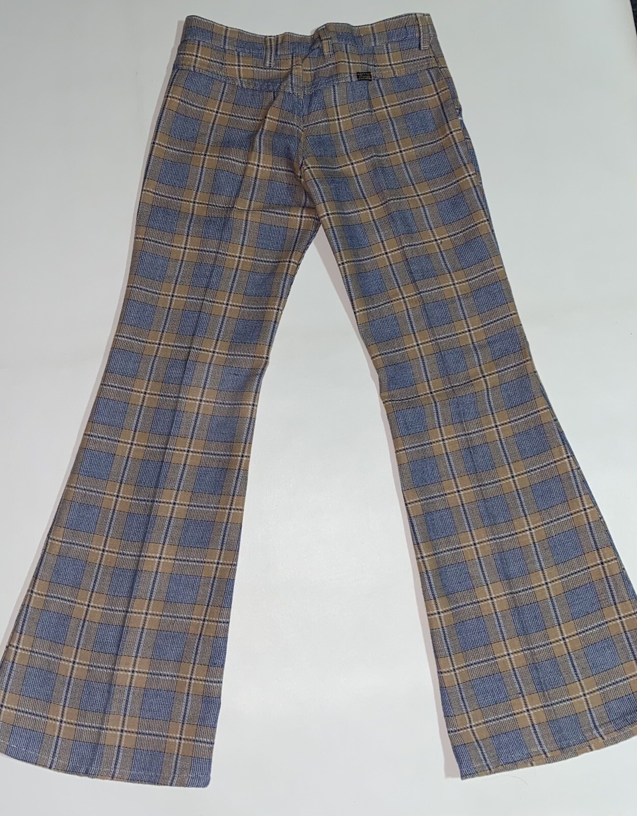 как выглядит Vintage Wrangler Plaid Bell Bottom Jeans 60s 70s Juniors 9 Modern 28x30 фото