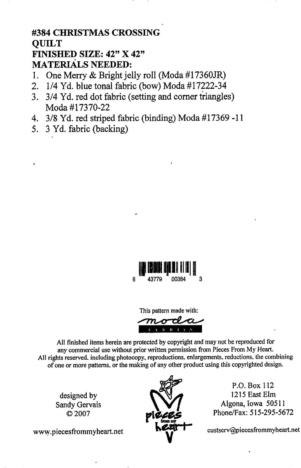 Christmas Crossing 384 Finished Quilt 42 x 42 Pieces From My Heart