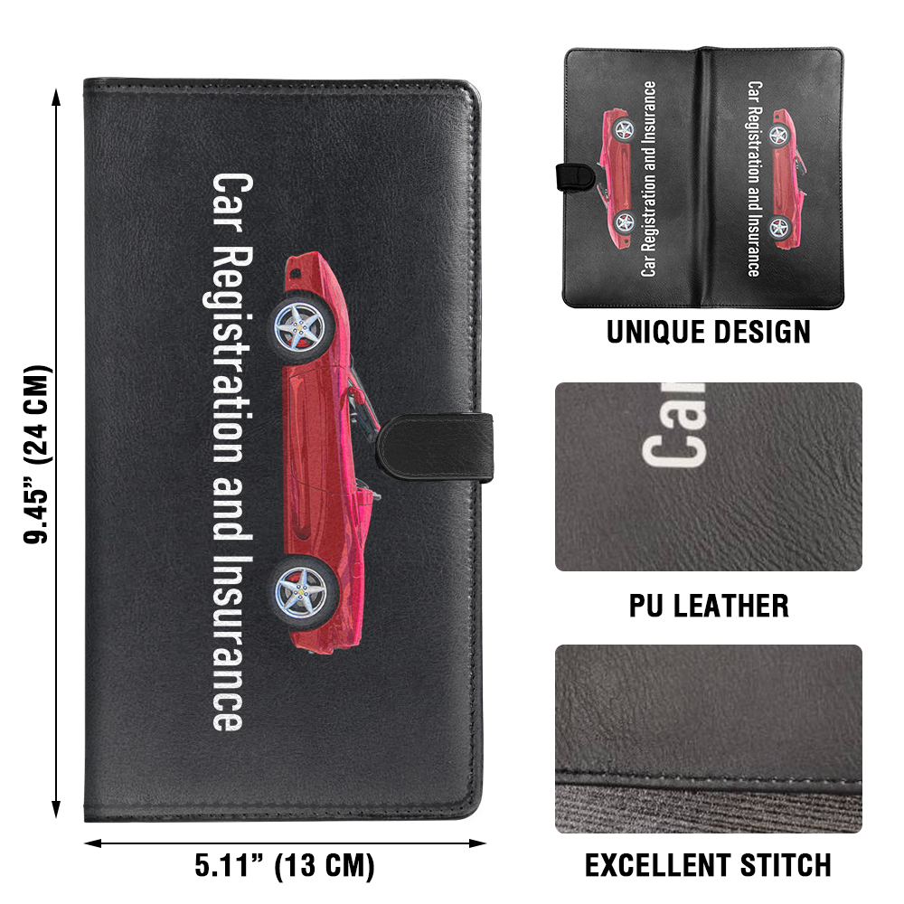 PU Leather Car Registration and Insurance Card Holder Wallet w/ Magnetic Closure