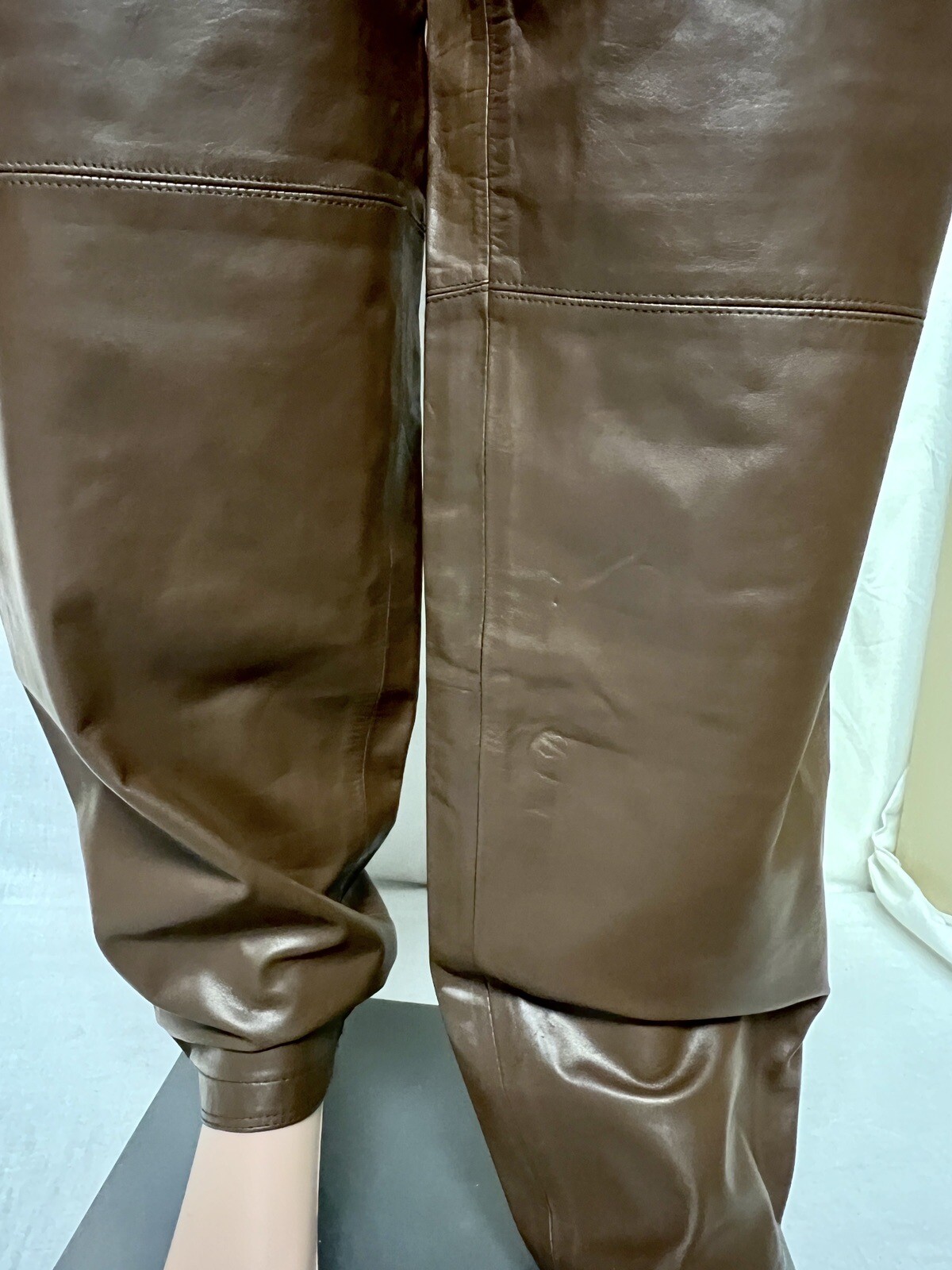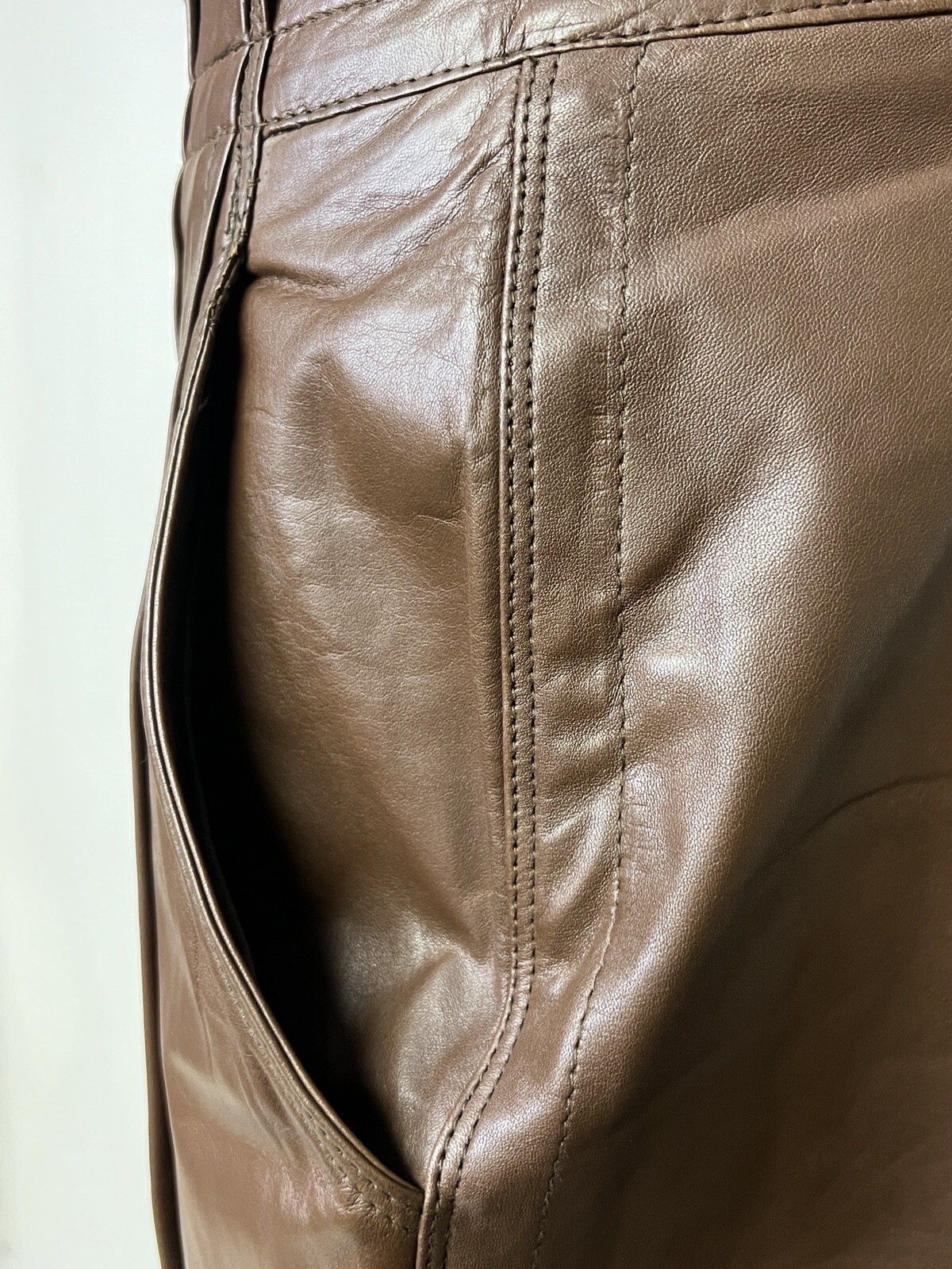как выглядит Womens Vintage Retro Toffs Buttery Soft Brown Leather High Waisted Pants фото