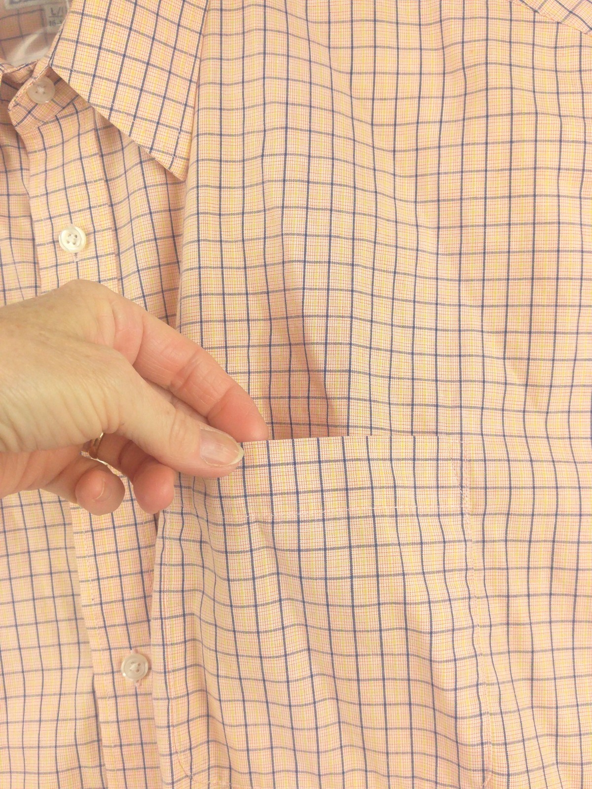 как выглядит Mens Shirt Long Sleeve Plaid Work Casual Button Front L 16-16 1/2 Salmon Blazer фото