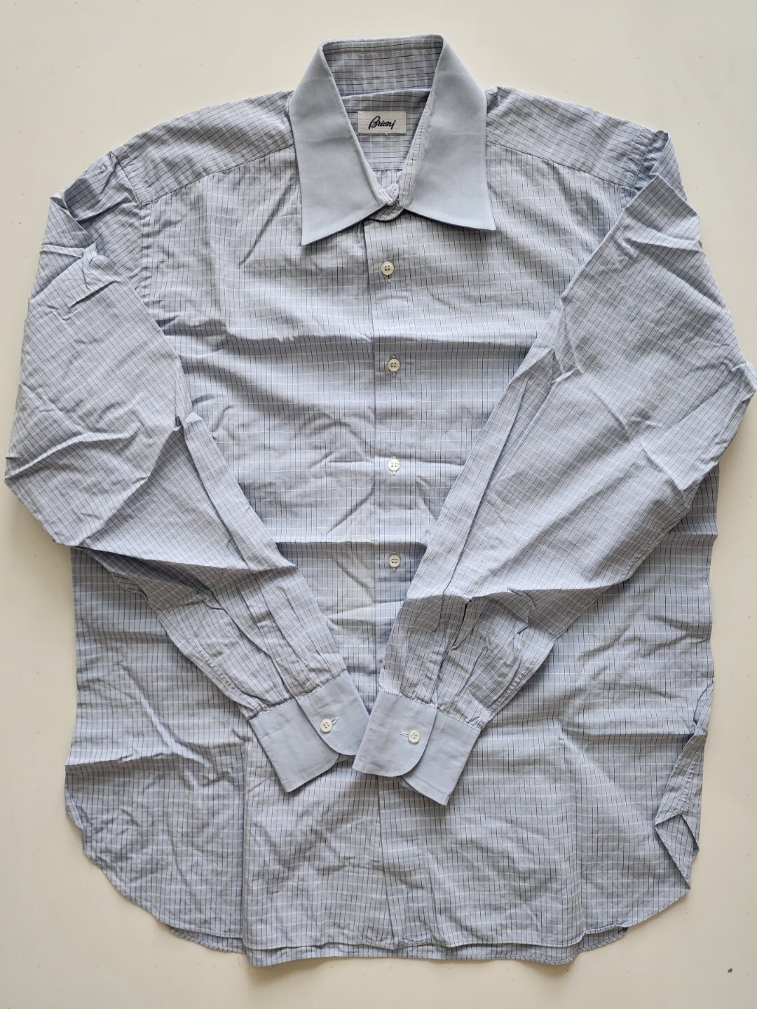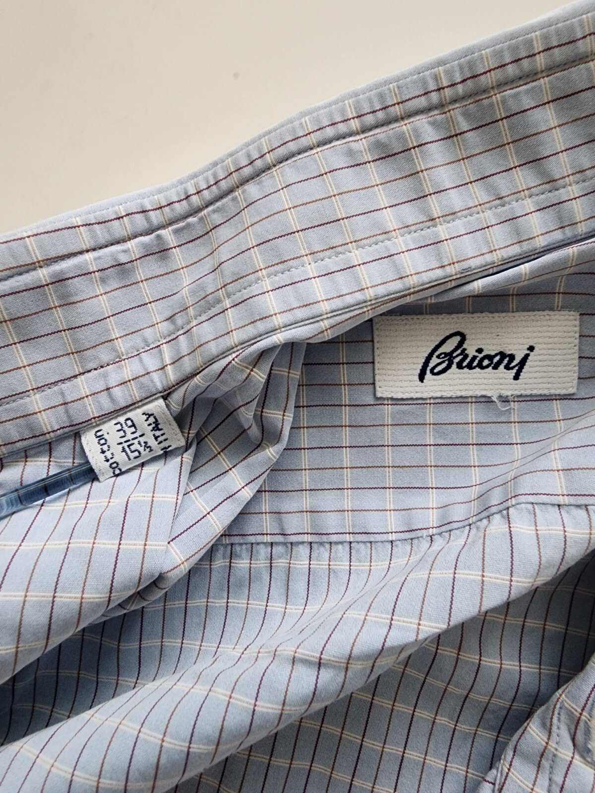 Brioni Men Windowpane Dress Shirt Made In Italy 15.5 39cm.
