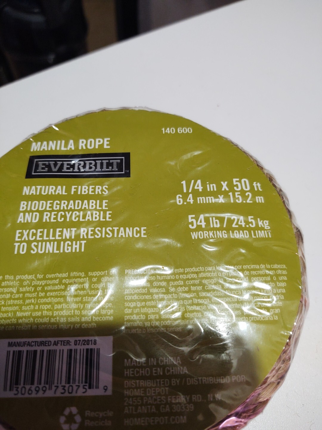 как выглядит 50ft Twisted Manila Rope Jute Rope Thick Everbilt Burlap Rope фото