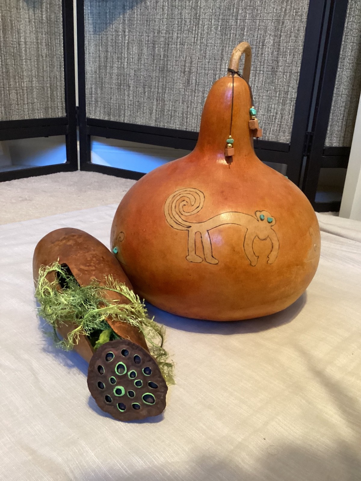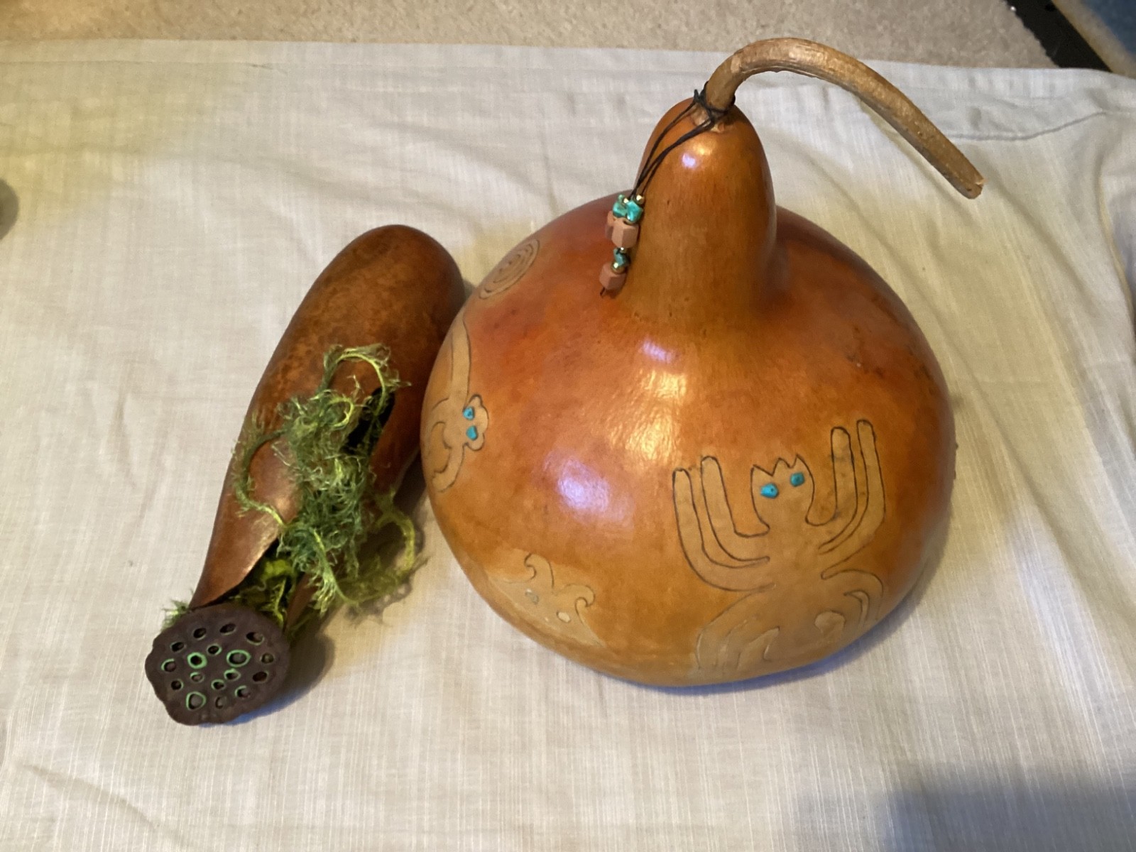 Vintage Lot of 2 Hand Painted Gourds Art OOAK Orig Handmade Southwest