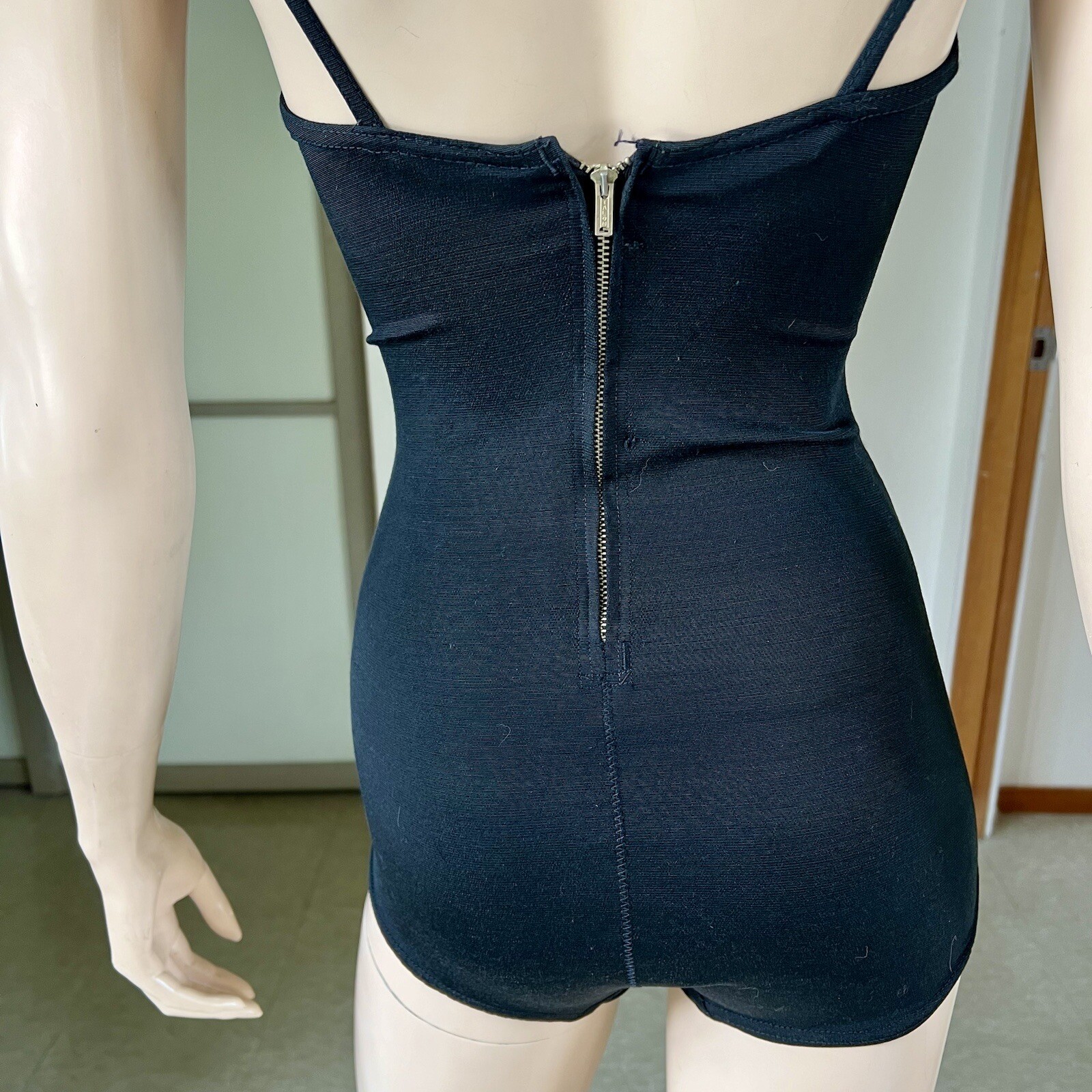 1950s vintage Surf Togs black and chartreuse swimsuit XS